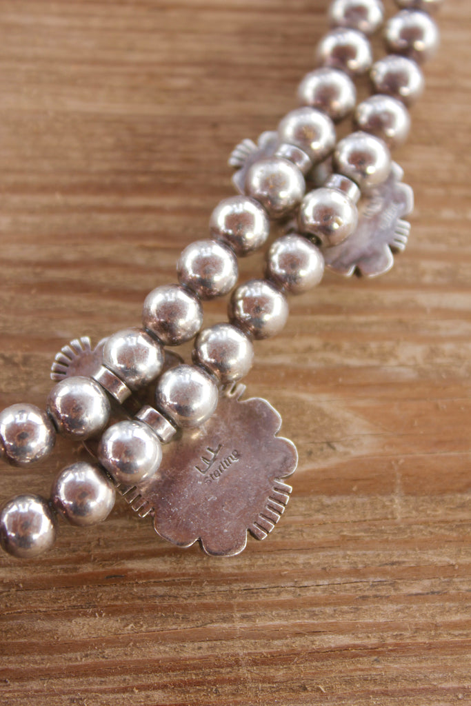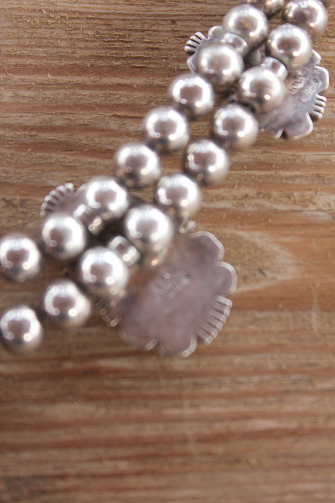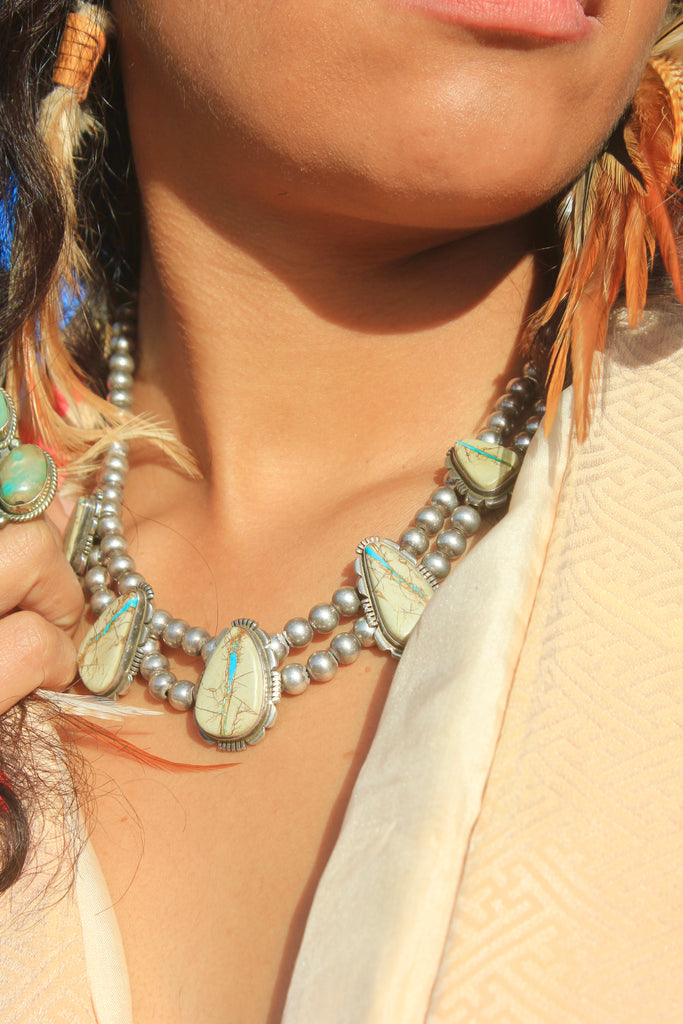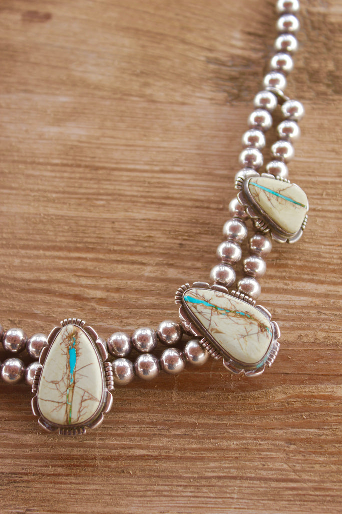 Vintage Navajo Signed Incredibly Rare Turquoise inlay White Buffalo Sterling