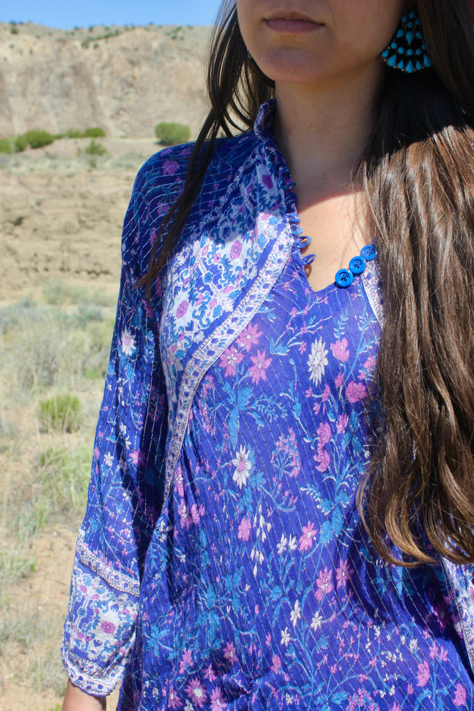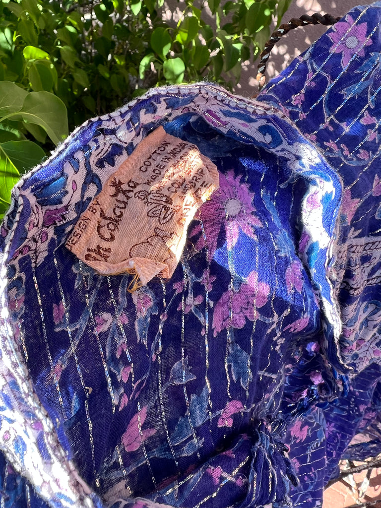 "Oh Calcutta" 1970s Gauzy Indian Mini-Dress with Metallic Thread