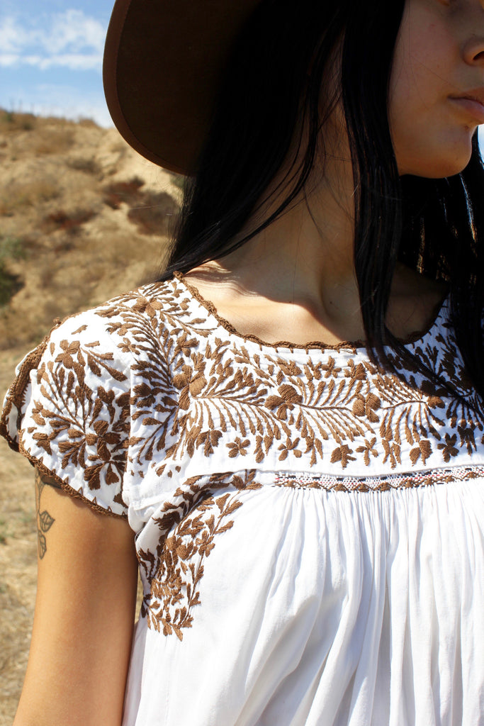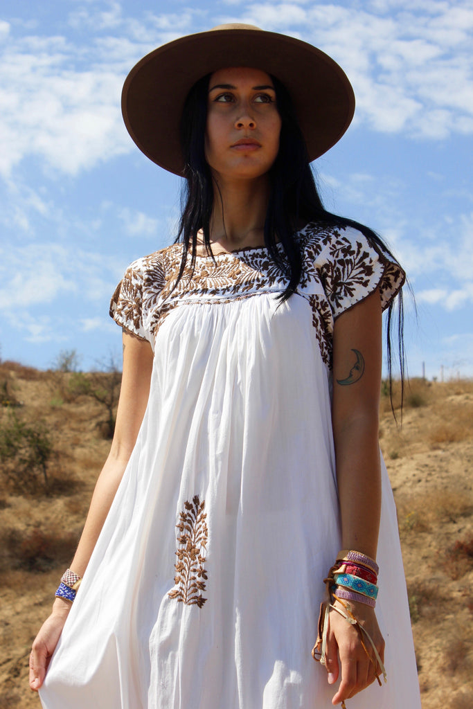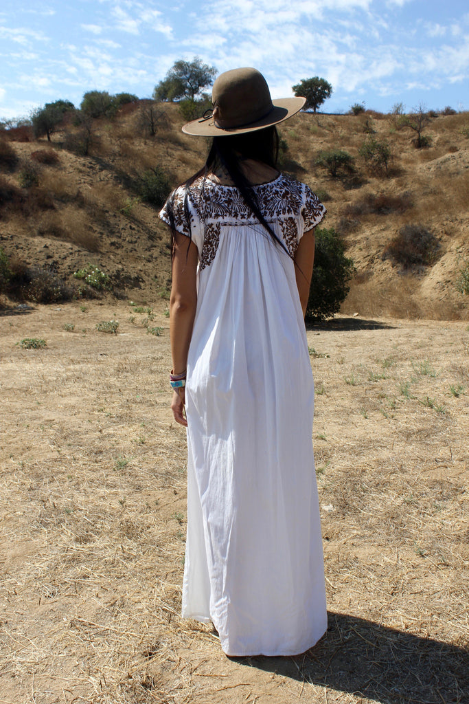 Earthy Oaxacan Beauty 1970s Hand Embroidered Maxi Dress