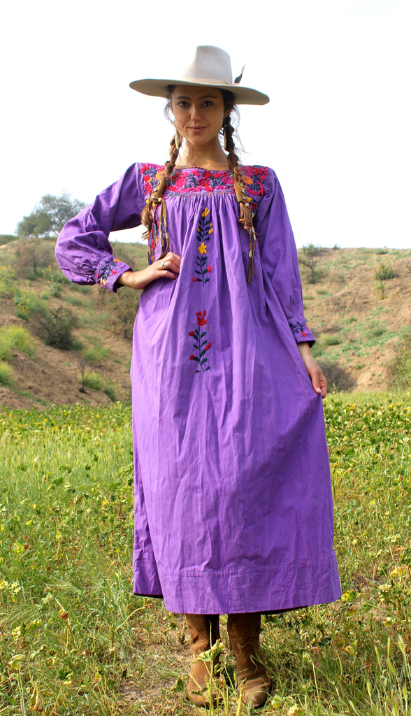 "Pretty Purple" Vintage Hand Embroidered Oaxacan Maxi Dress