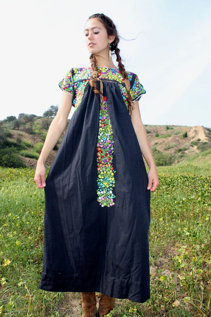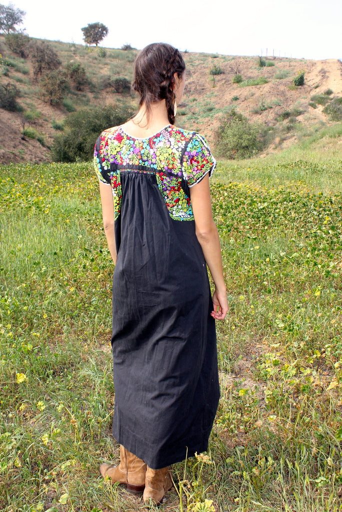 Rare "Black Beauty" Vintage Oaxacan Maxi Dress Circa 1970s