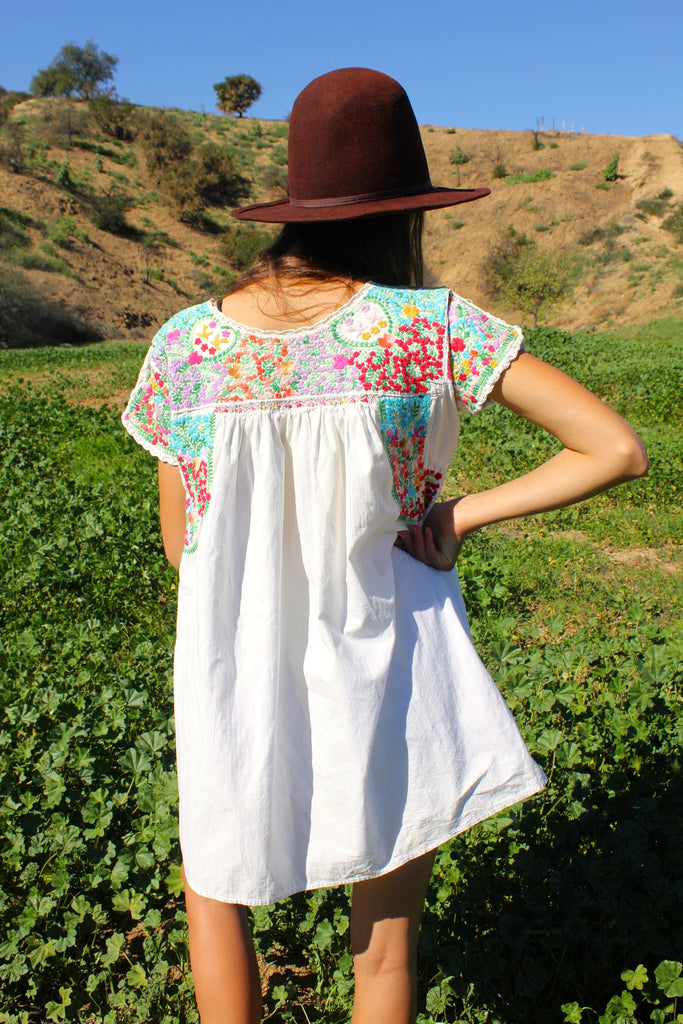 Vintage Oaxacan Beauty Hand Embroidered Mini Dress 1970s