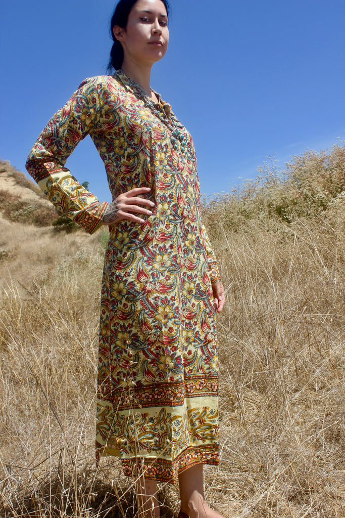 1970s Deadstock Indian Block Print Dress