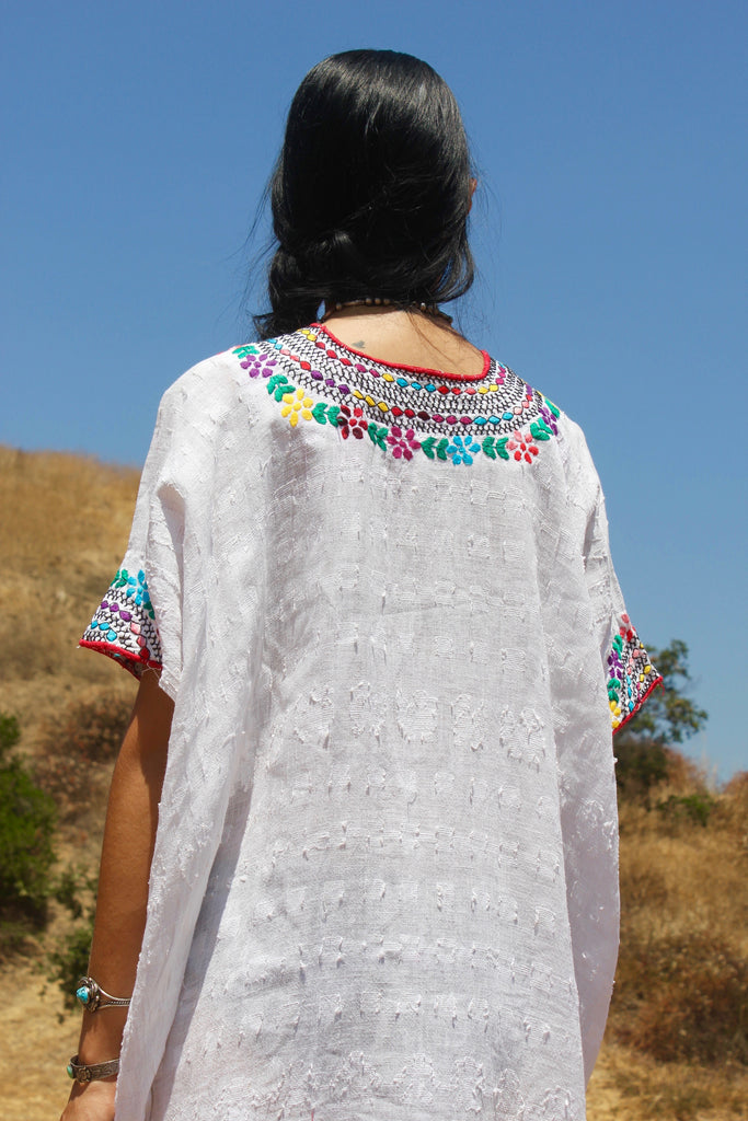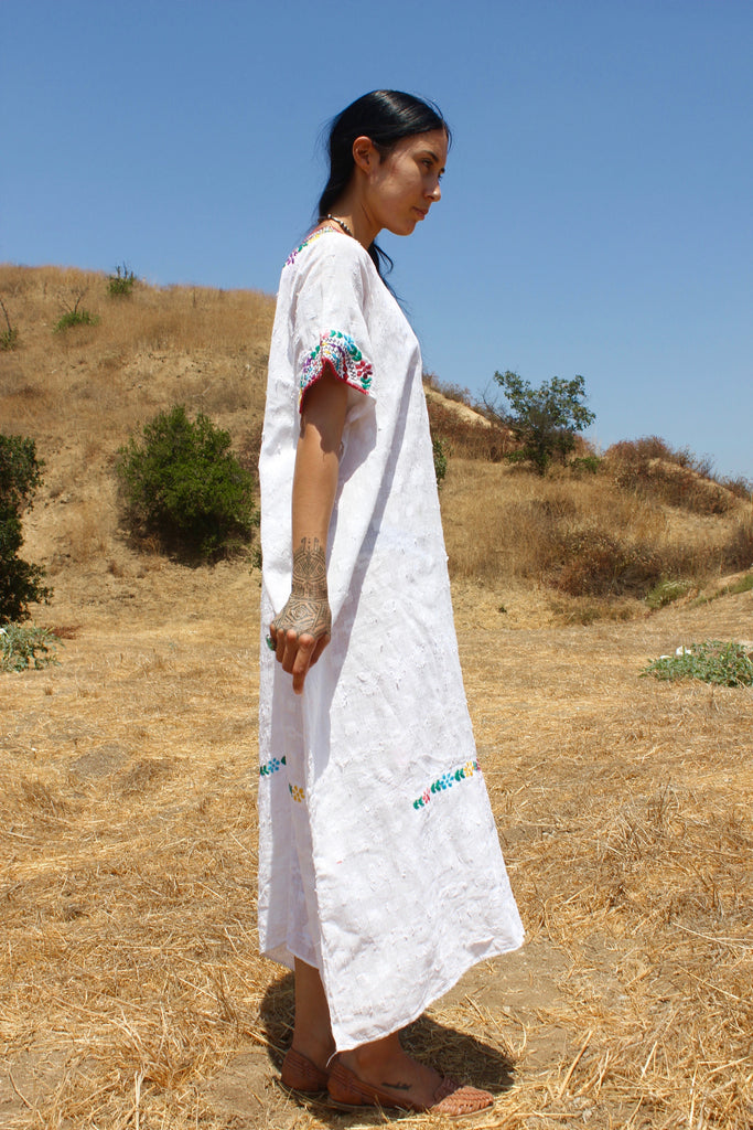 1970s Folk Art Handwoven Mexican Maxi Dress