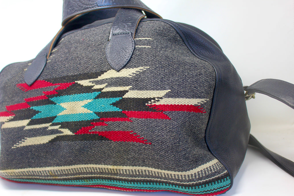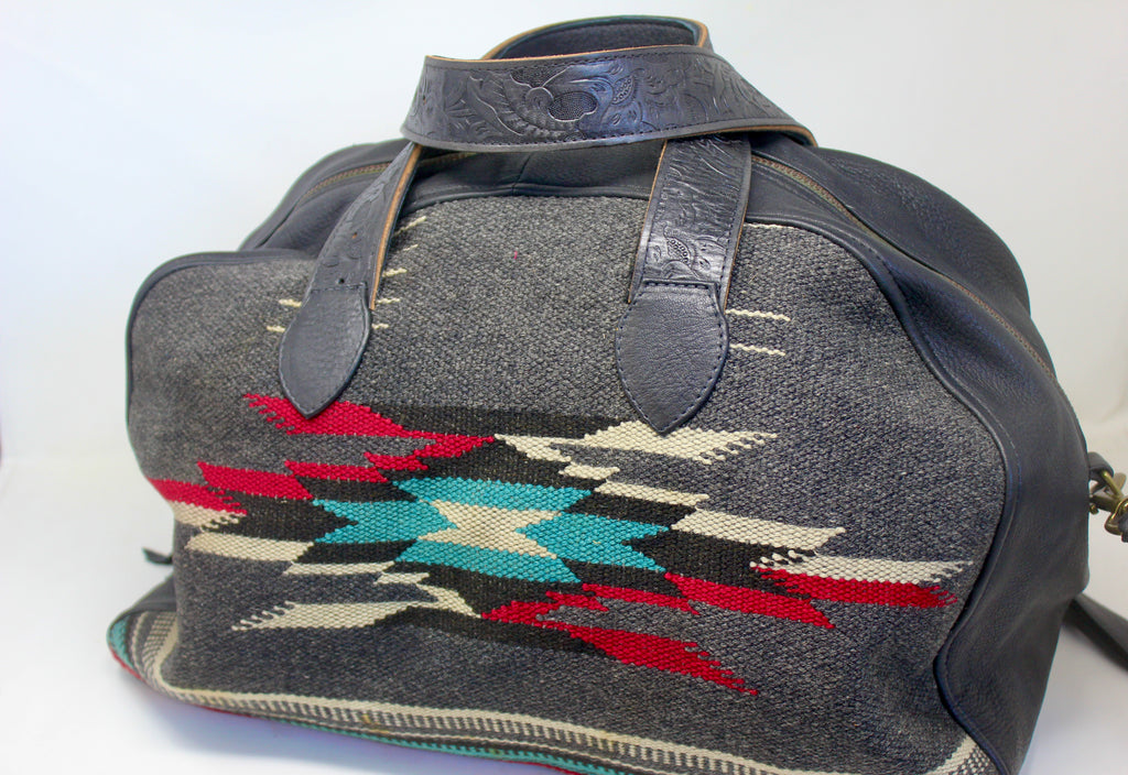 Antique Chimayo Textile Handmade Honeywood Overnighter Bag