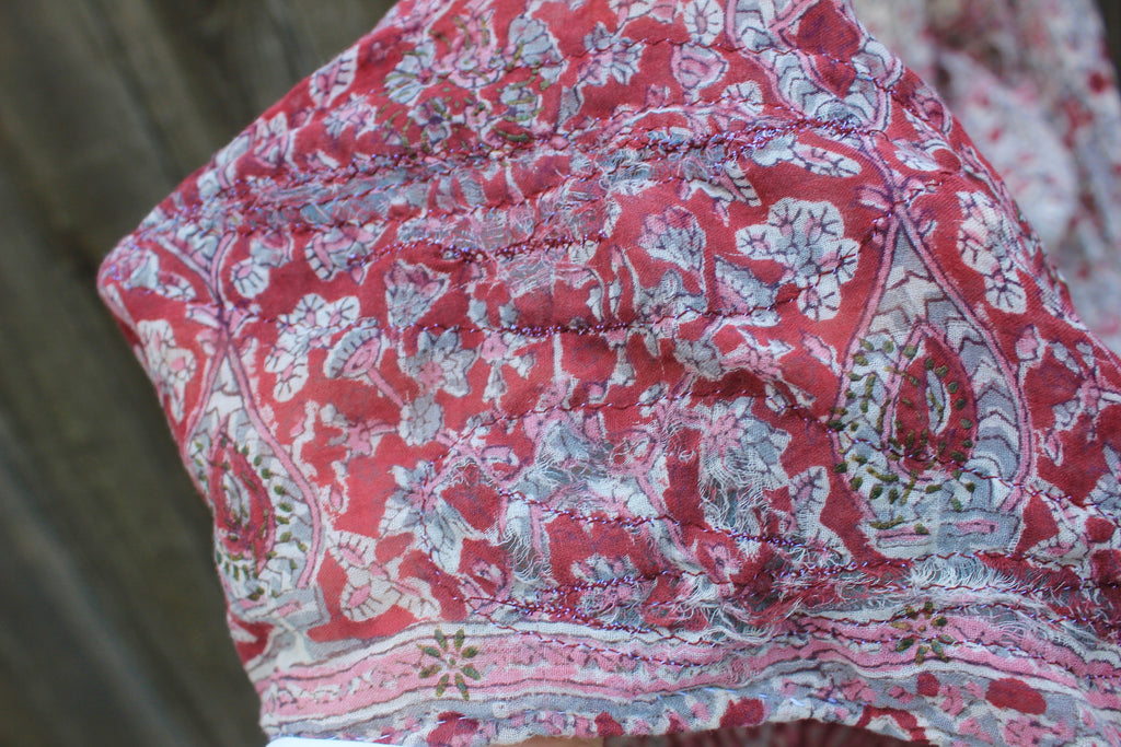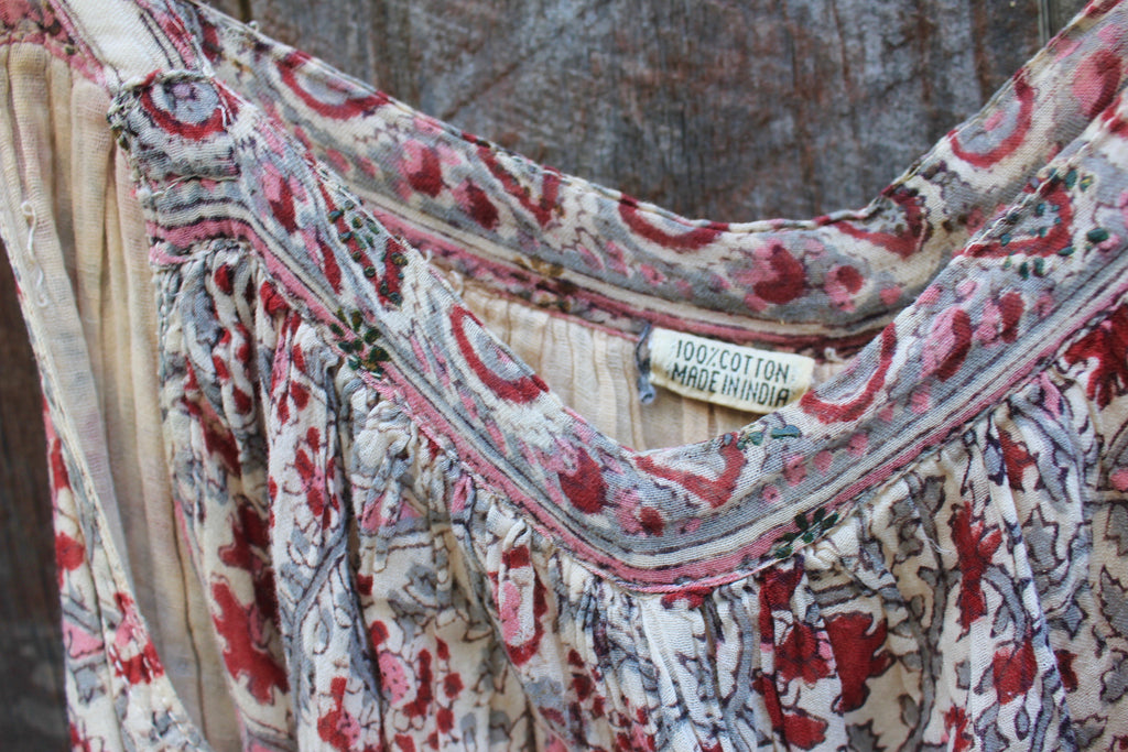 This beauty has some wear but it is in very good condition considering its age. Please note there is a repair on the lower hem. Can be seen in last picture.