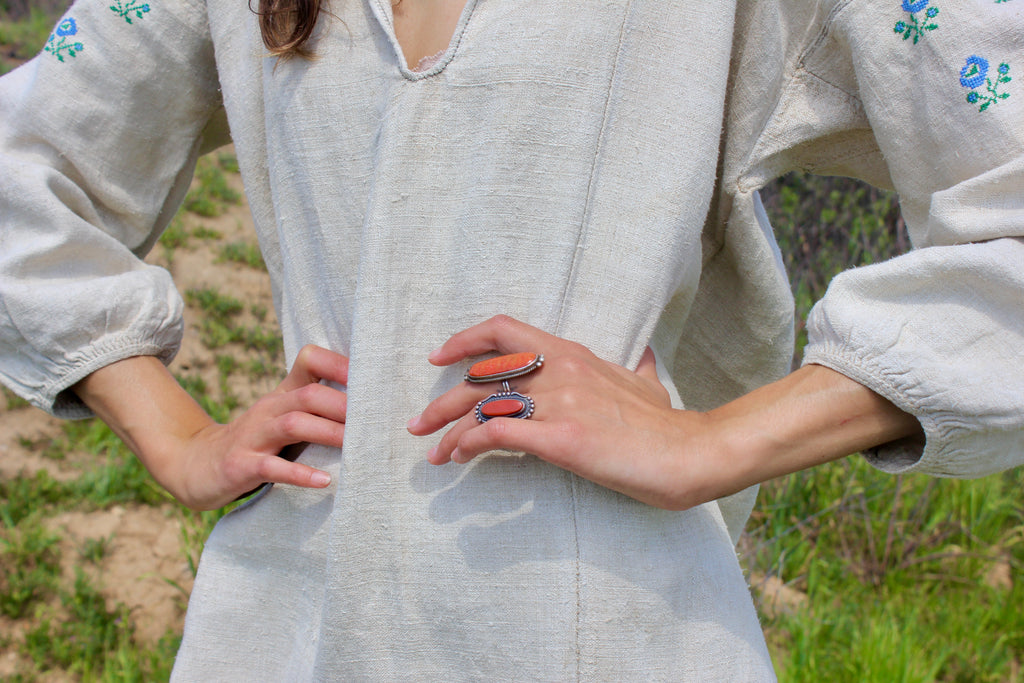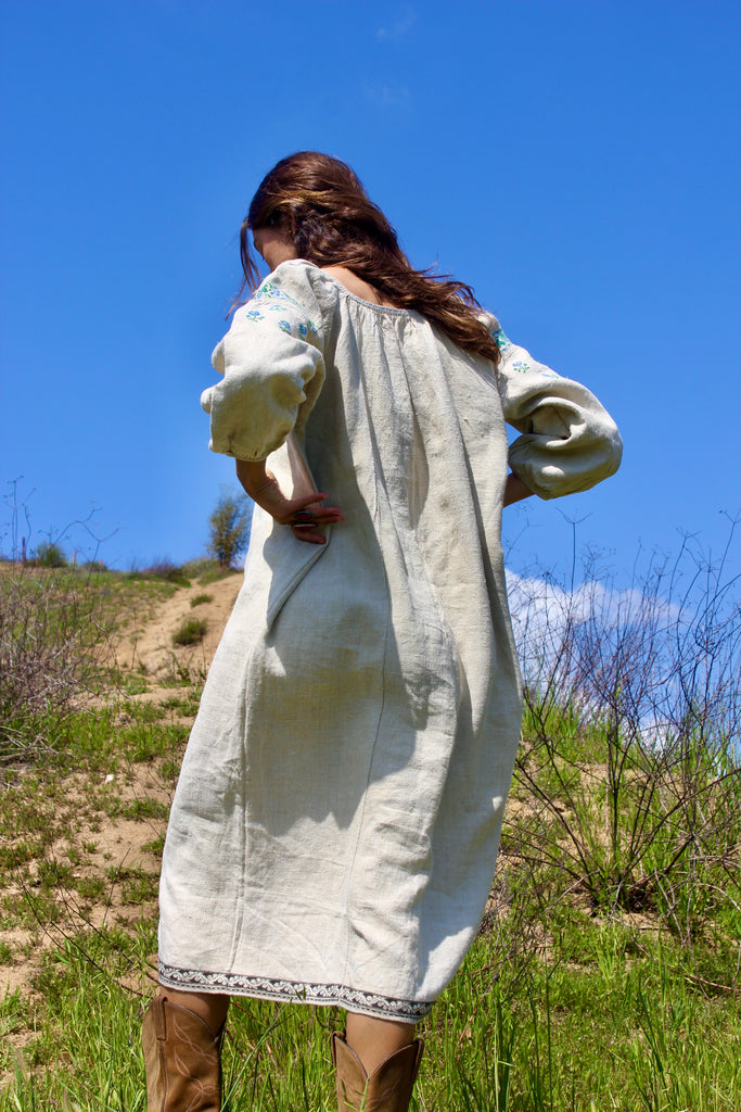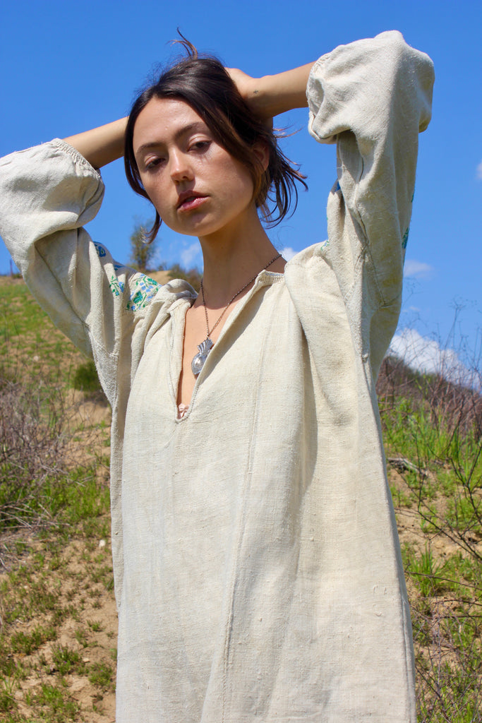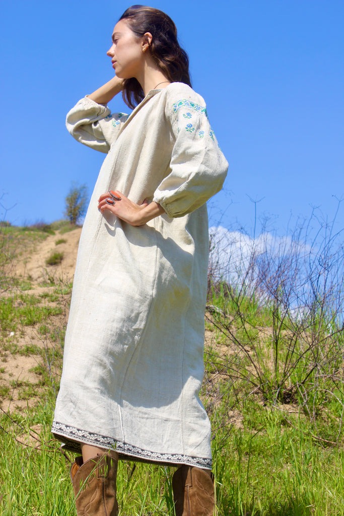 Early Century Eastern European Hemp Hand Embroidered Dress