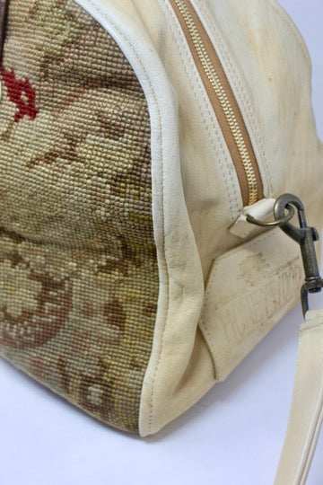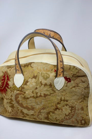 Exquisite Antique French Needlepoint Honeywood Original Overnighter Bag