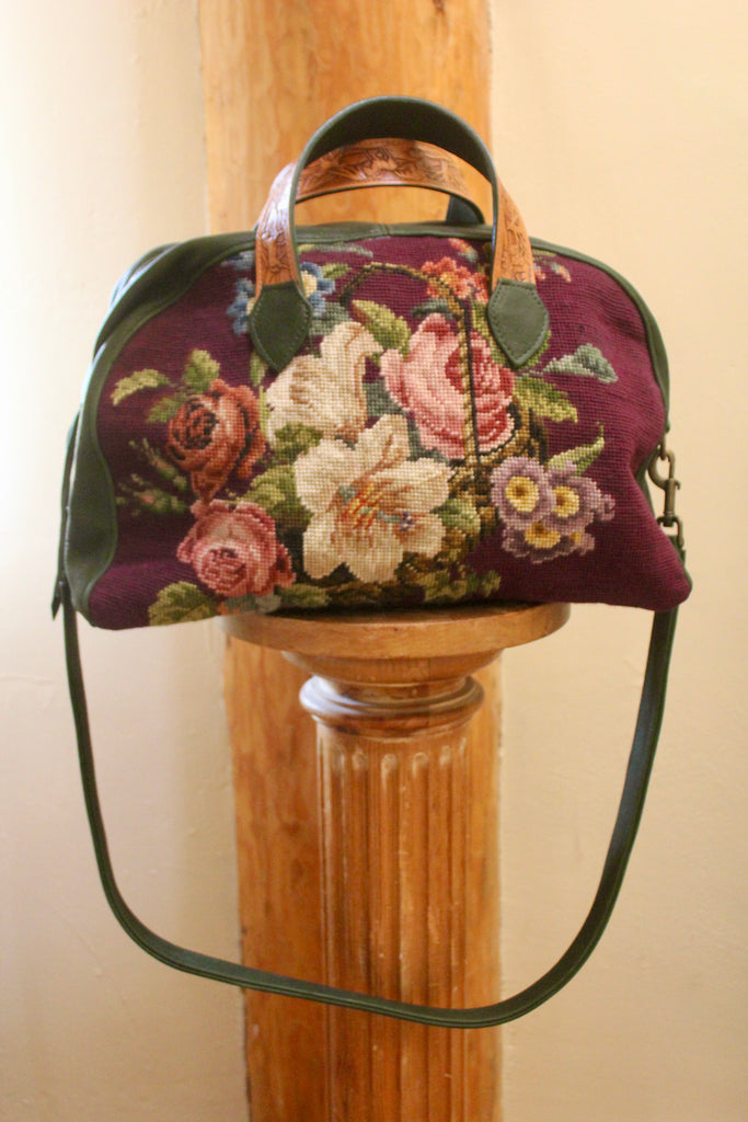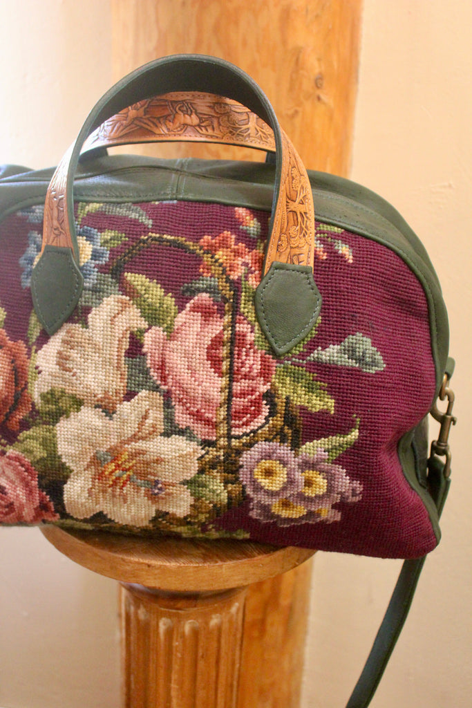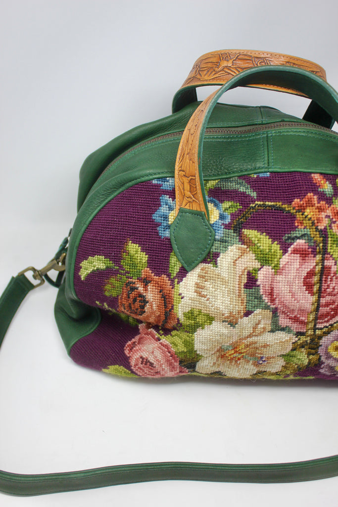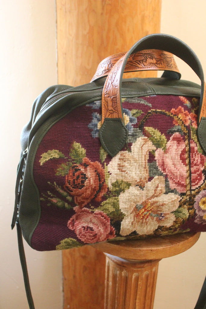 Floral Deluxe Honeywood One of A Kind Overnighter Bag Deerskin and Needlepoint