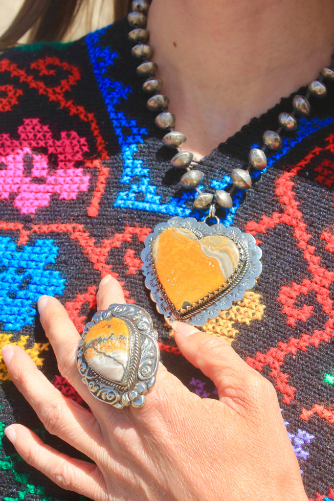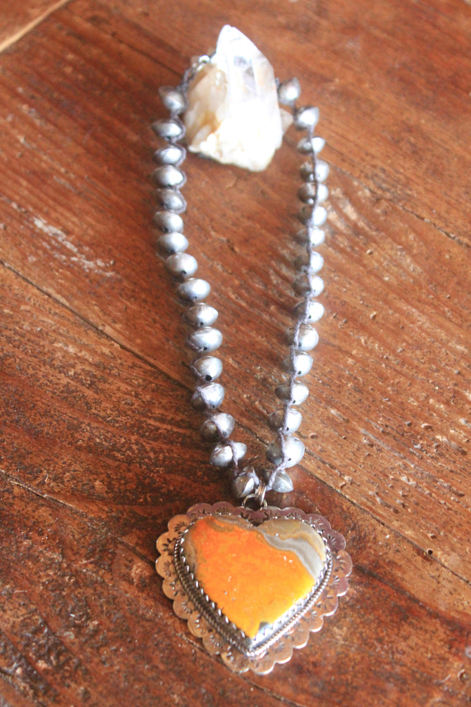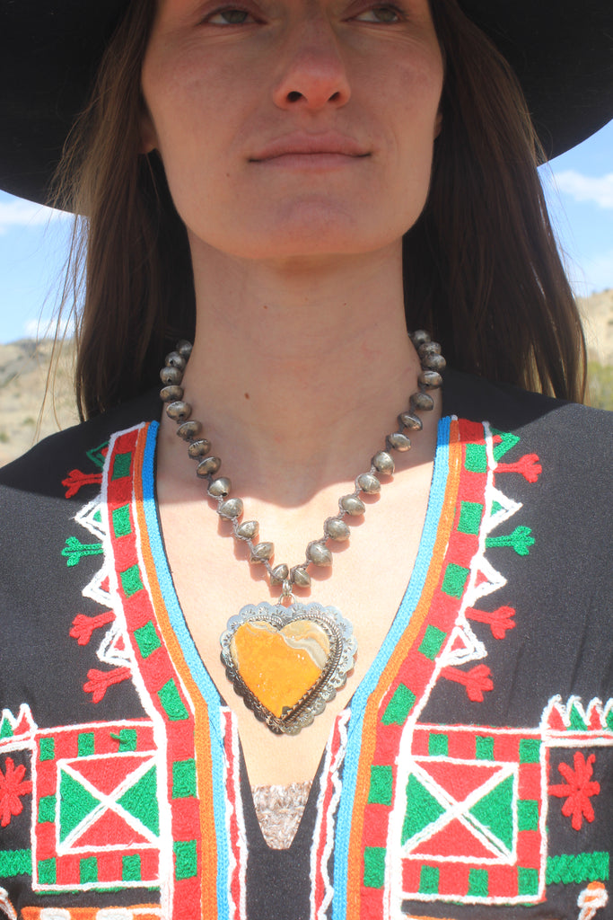 Hand Carved Bumblebee Jasper with Tibetan Silver Necklace