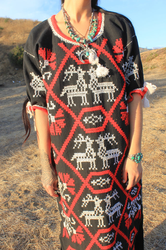 Hand Embroidered Huichol Sacred Deer Vintage Dress