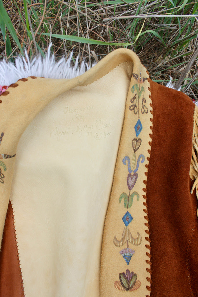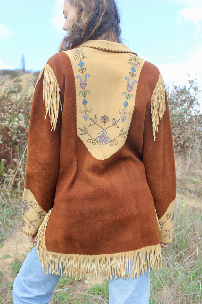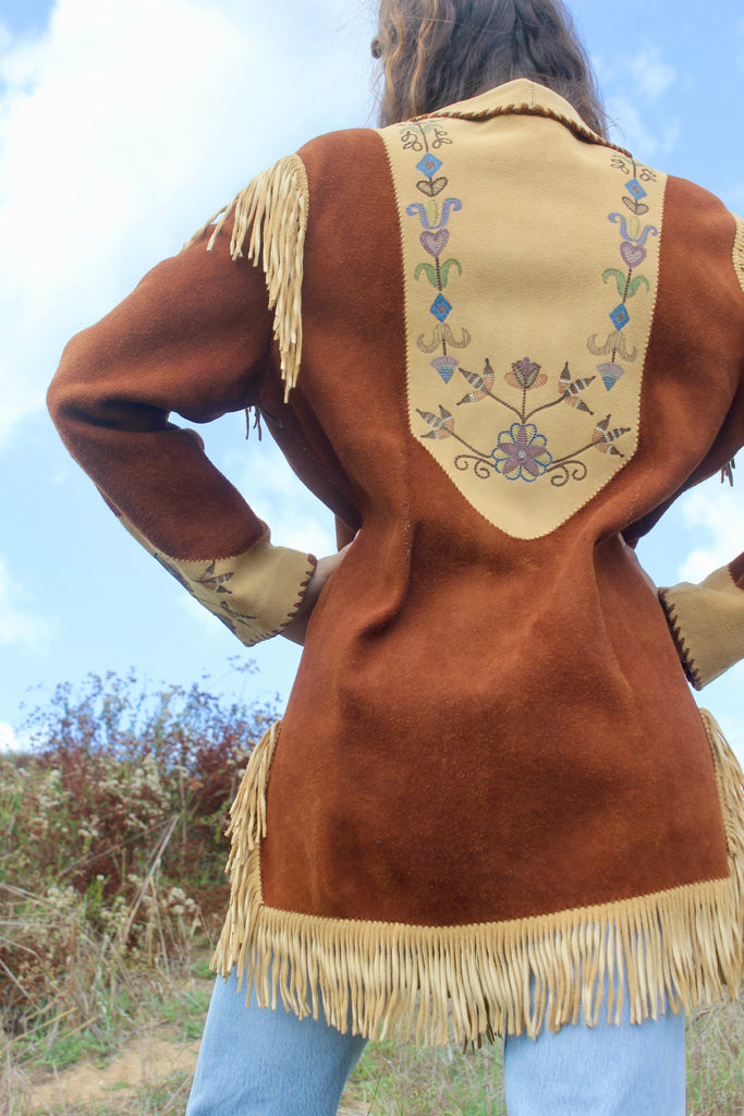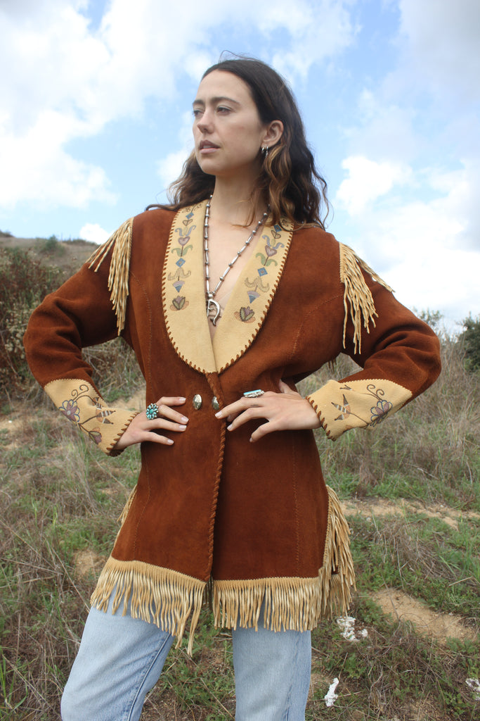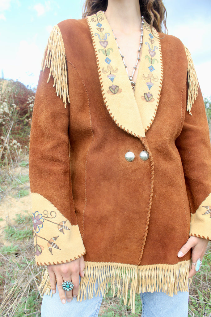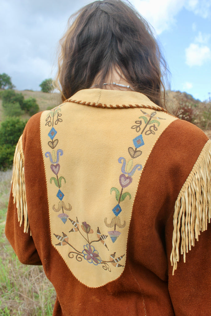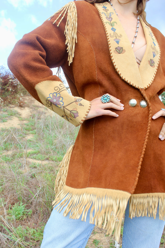 Handmade Deerskin Western Artisan Jacket Hand Drawn Flowers and Fringe