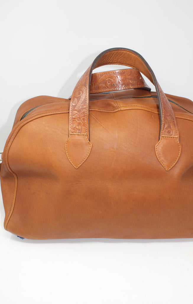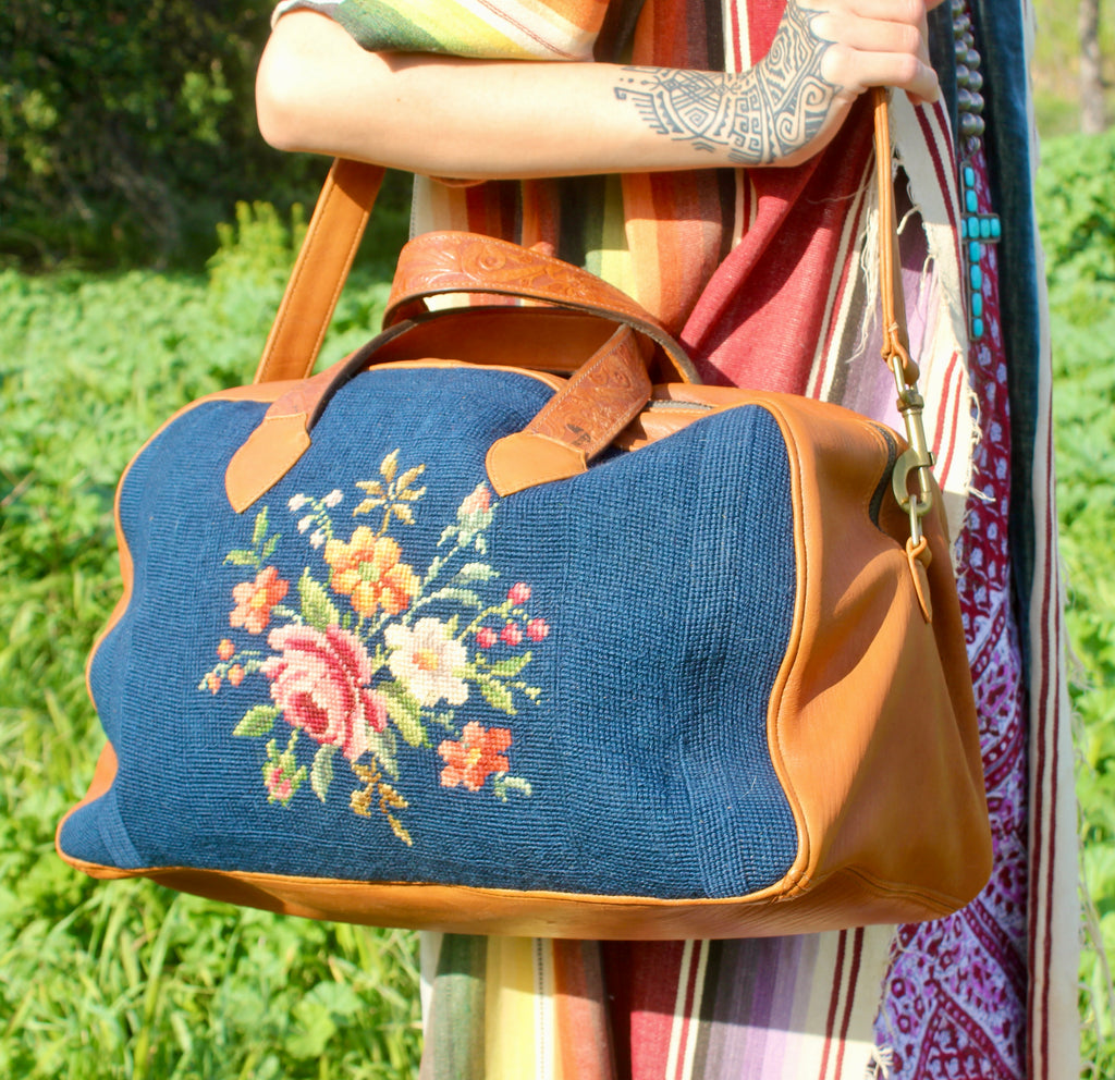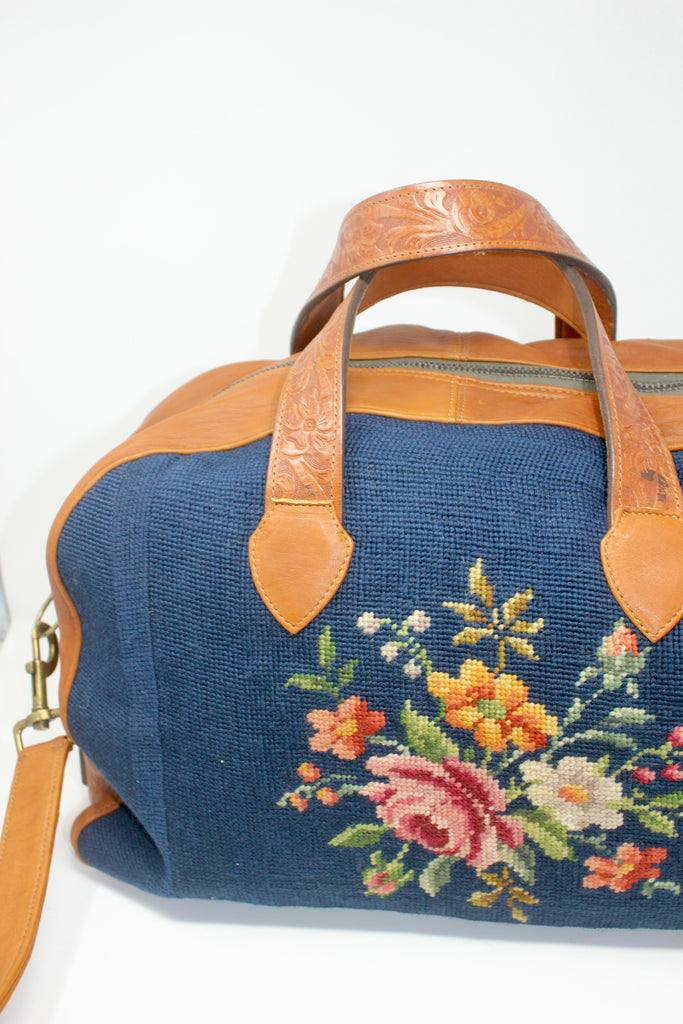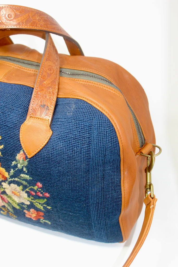 Rich Burgundy Antique Needlepoint with Chestnut Elk Hide