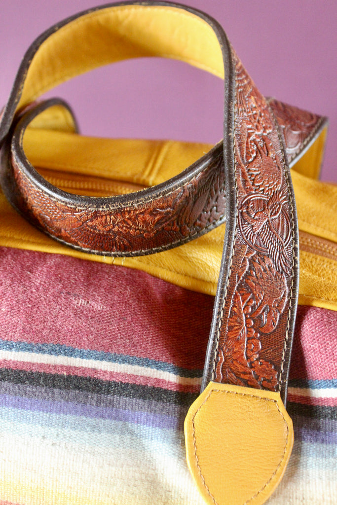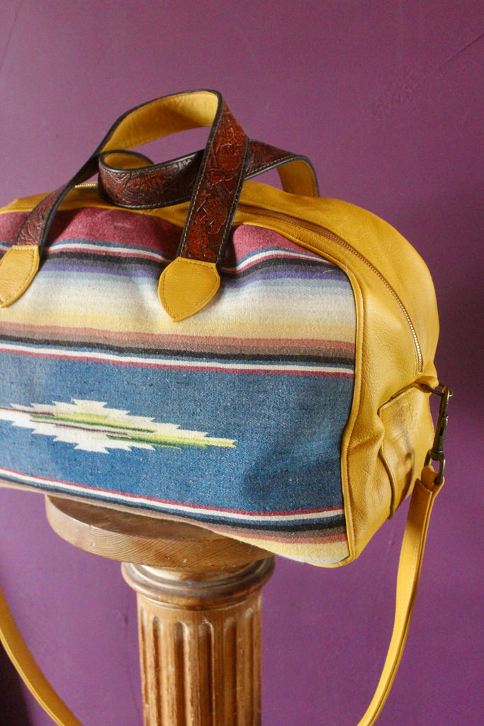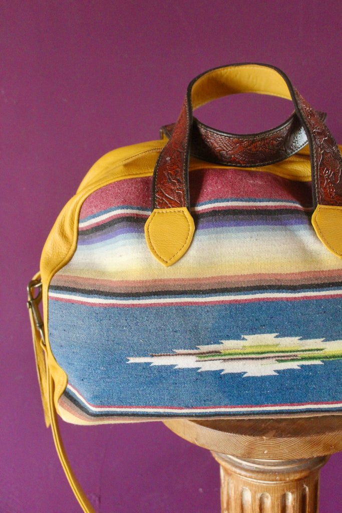 SALE Honeywood Handmade Deerskin Overnighter Antique Mexican Saltillo Weaving
