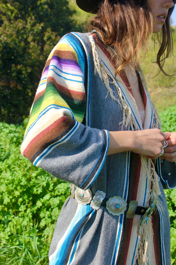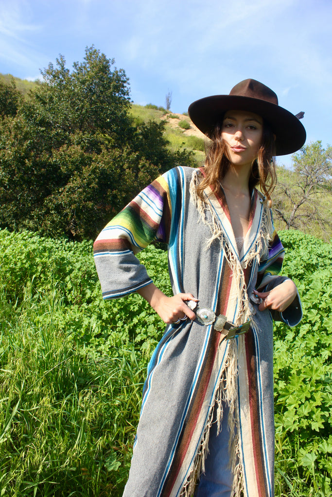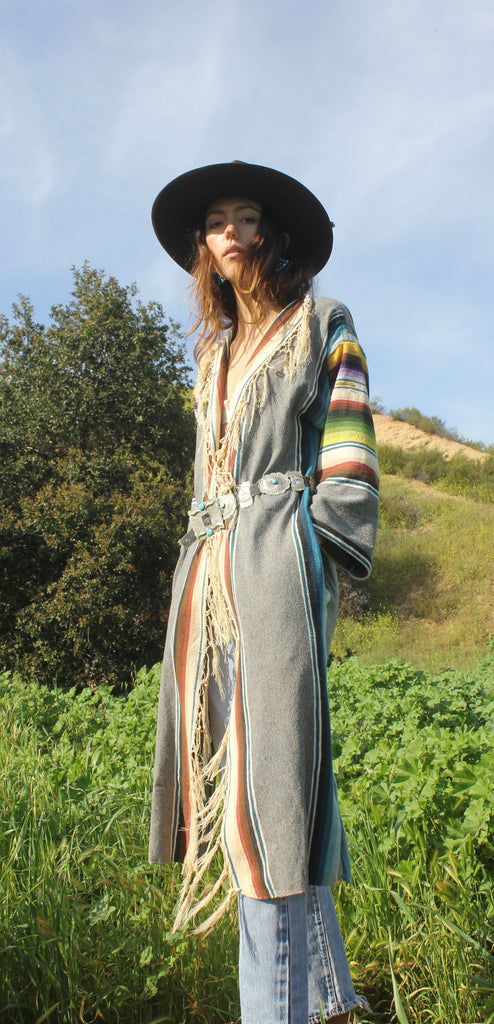 Born from our Love of Antique Textiles and our collection of Antique Mexican Saltillo Blankets the One of A Kind Honeywood Saltillo Duster is the perfect Spring Coat.