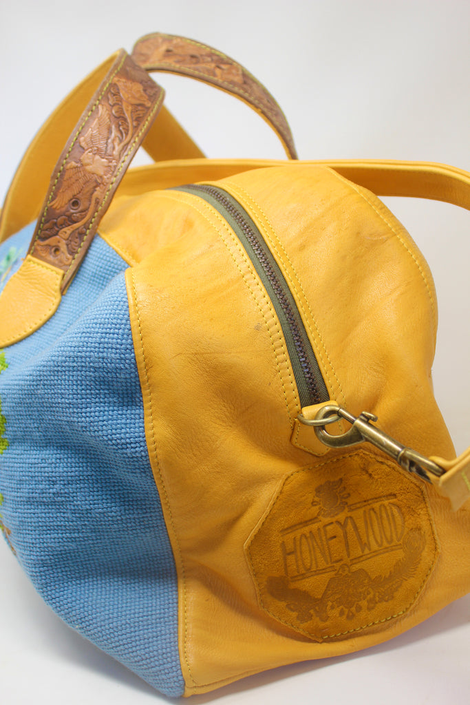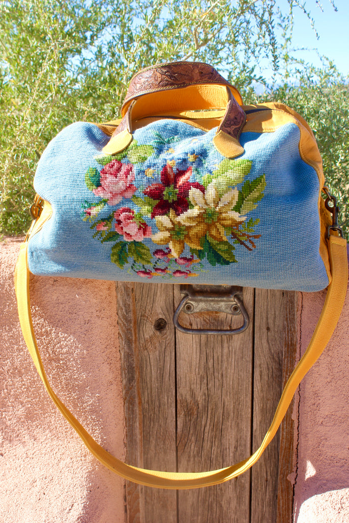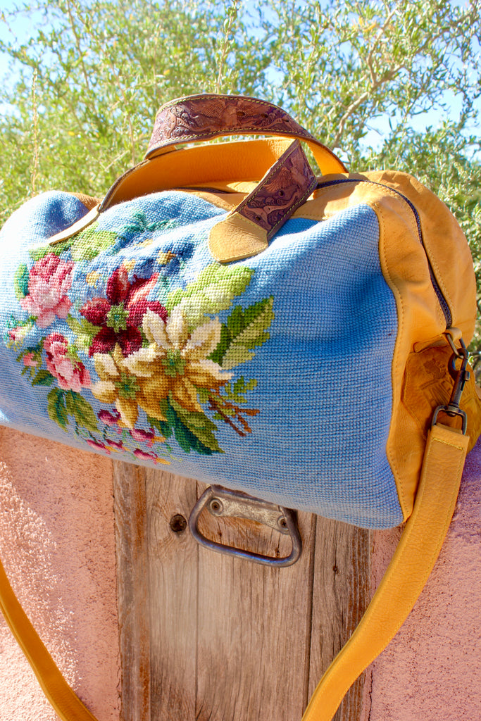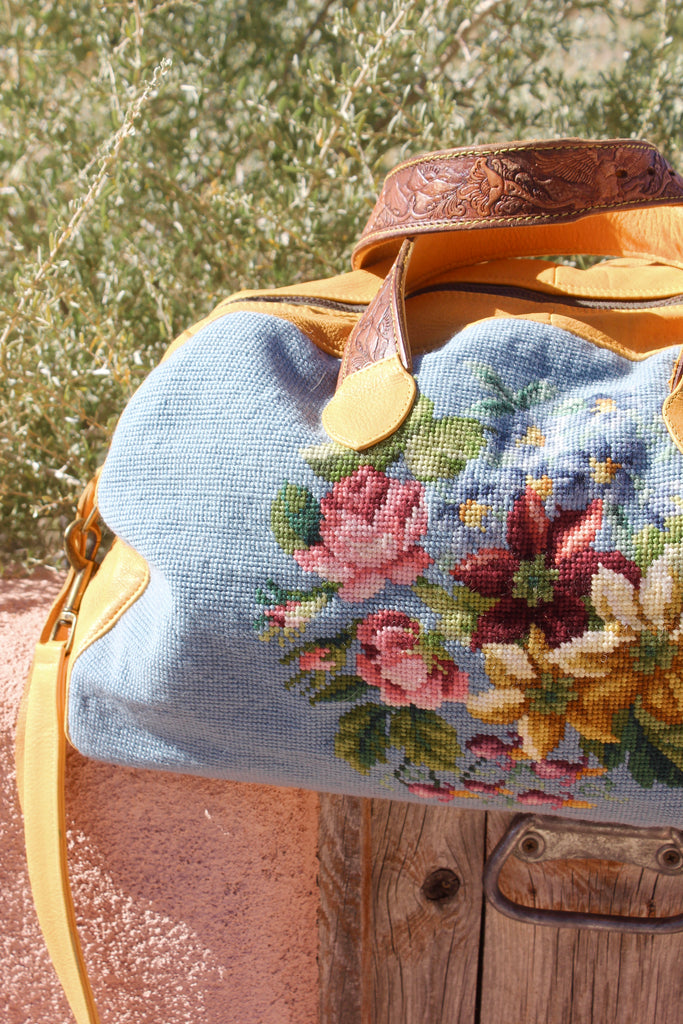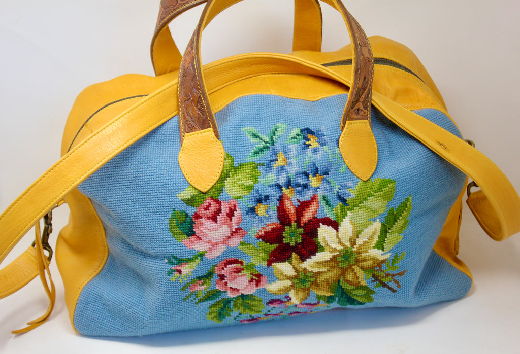 Honeywood Original Deerskin Antique Needlepoint Overnighter Bag