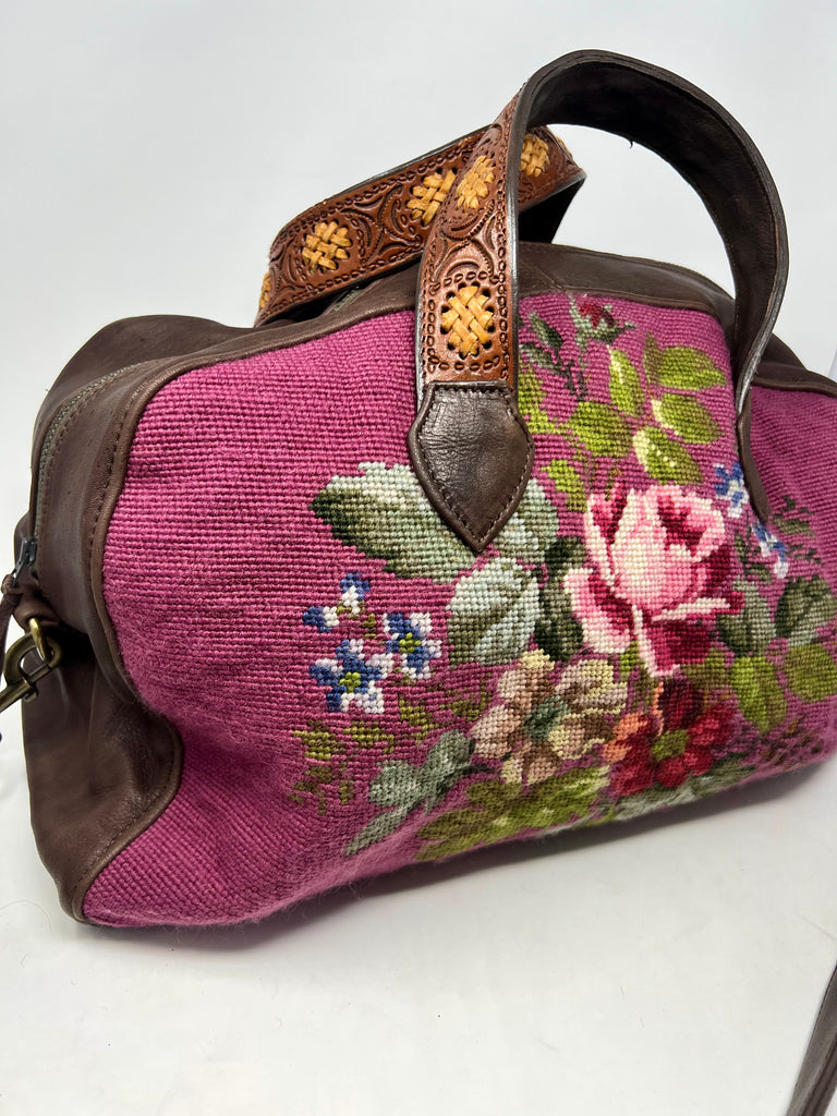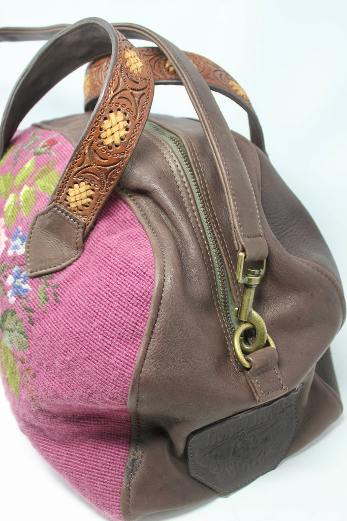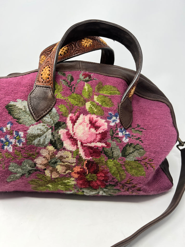 Honeywood Vintage Handmade Deerskin and Antique Needlepoint Overnighter
