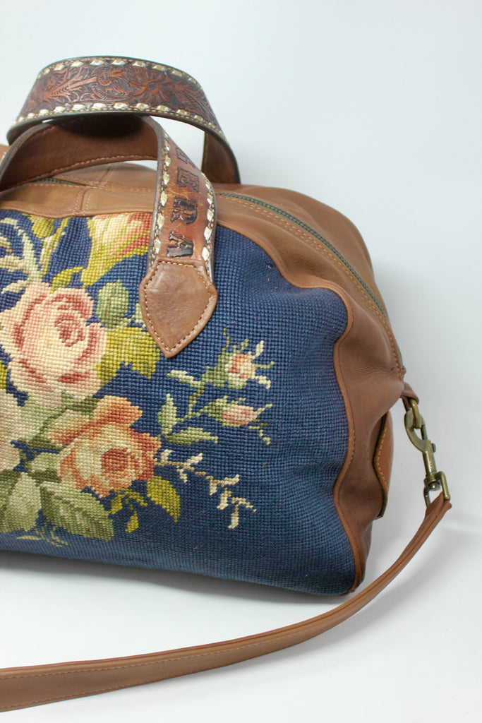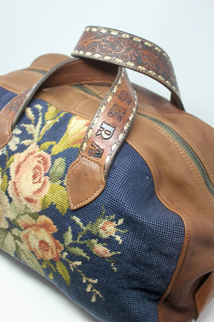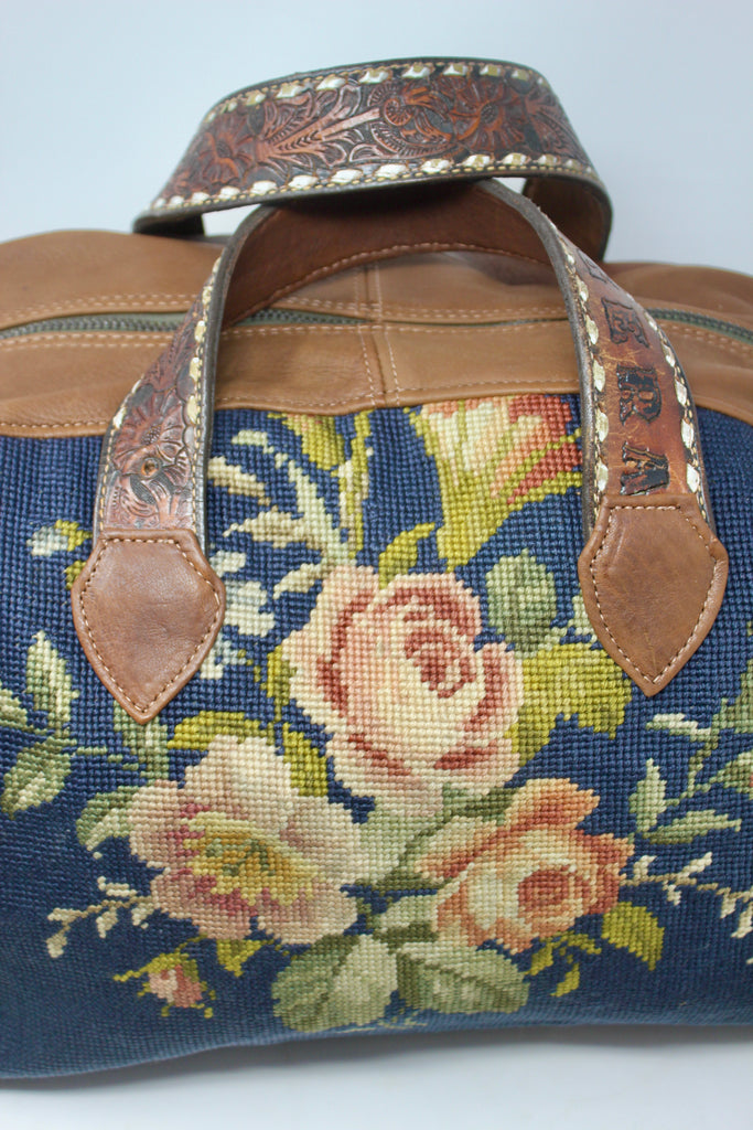 Indigo Floral Needlepoint Honeywood Overnighter Bag One 0f A Kind And Handmade.