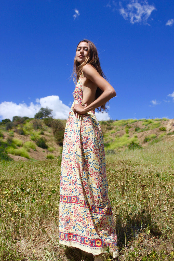 "Love" Vintage Indian Cotton Block Print Halter Dress