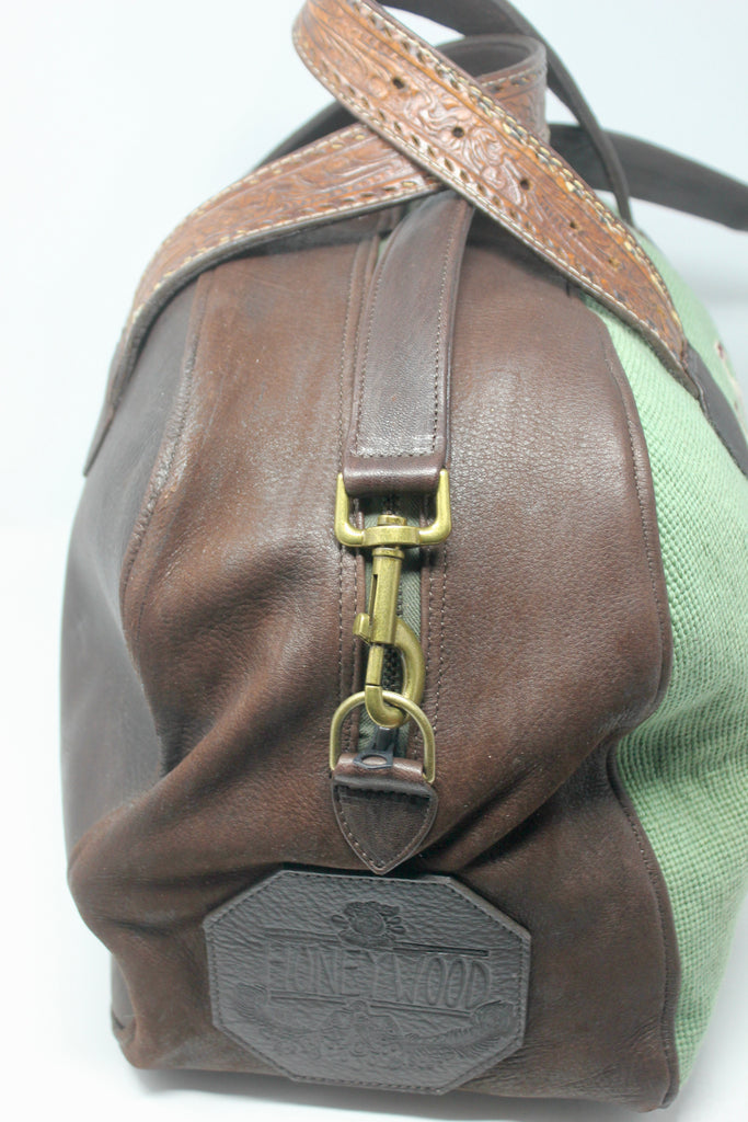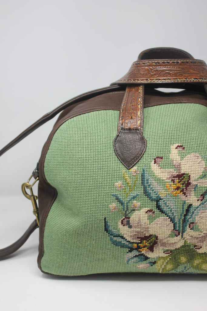 Antique Hand Embroidered Lillies Honeywood Vintage Original Overnighter Deerskin Bag