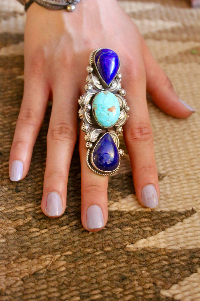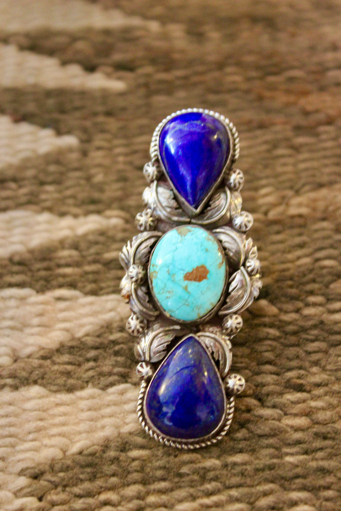 Navajo Exquisite X-Large Turquoise and Lapis Ring by Abel Toledo