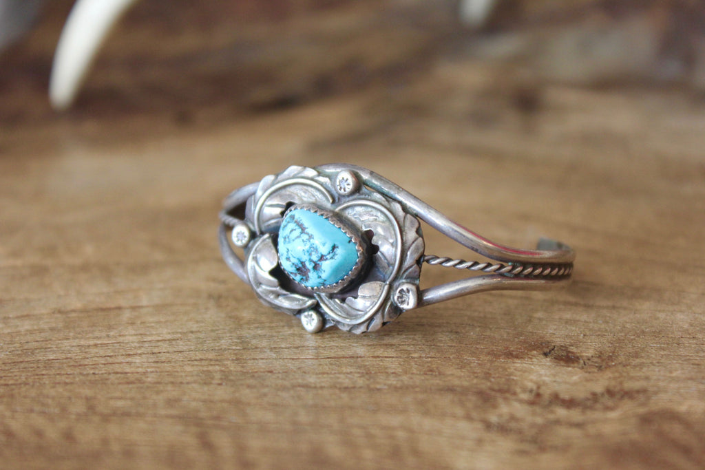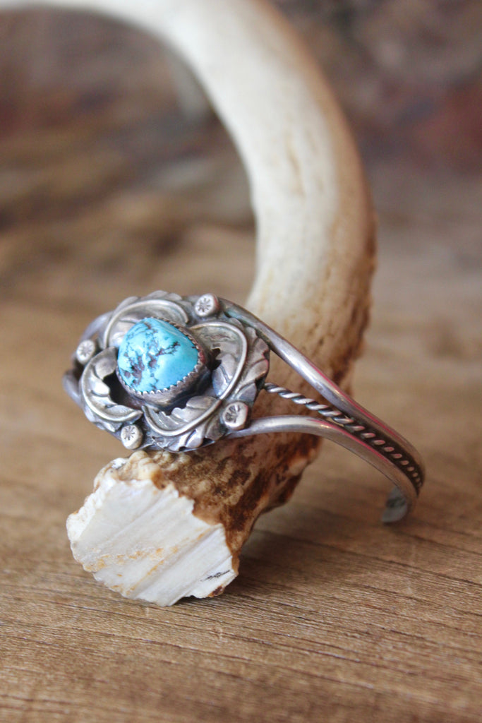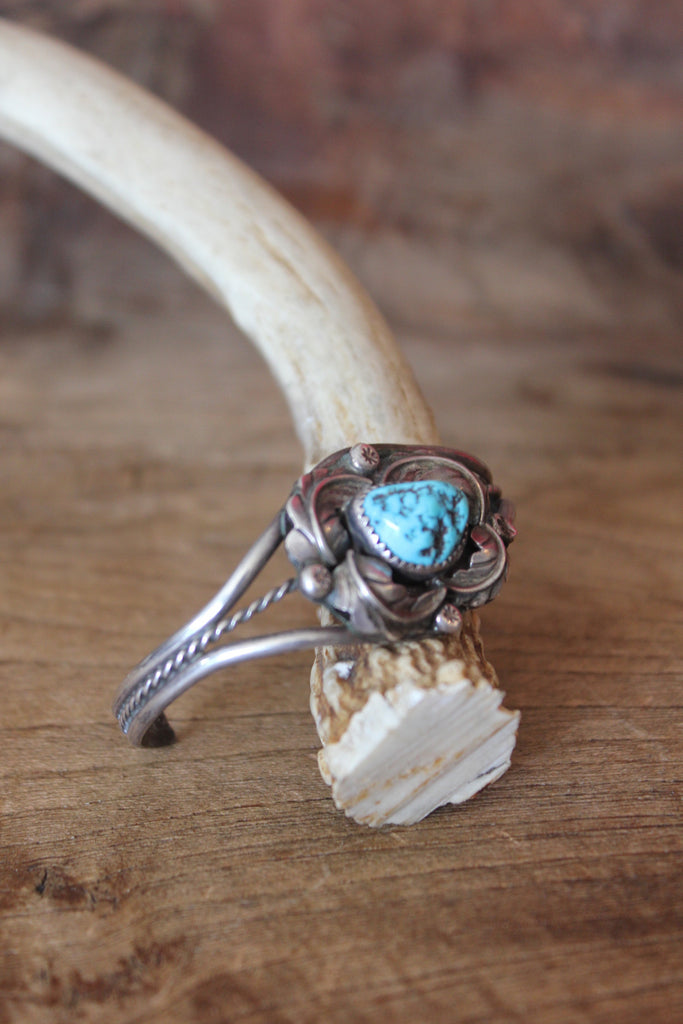 "Navajo Flower" Old Pawn Native American Turquoise Bracelet