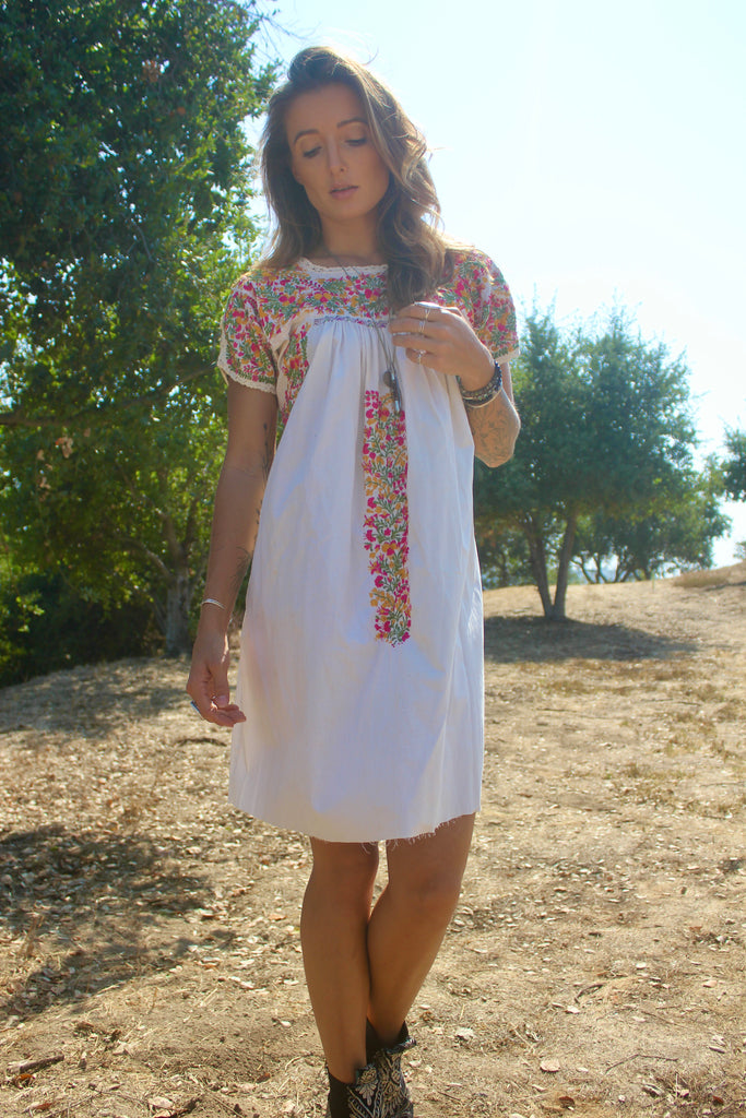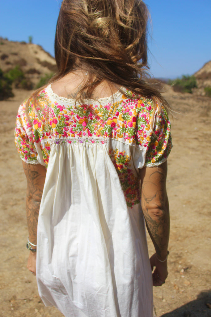 1970s Hand Embroidered Oaxacan Cotton Dress
