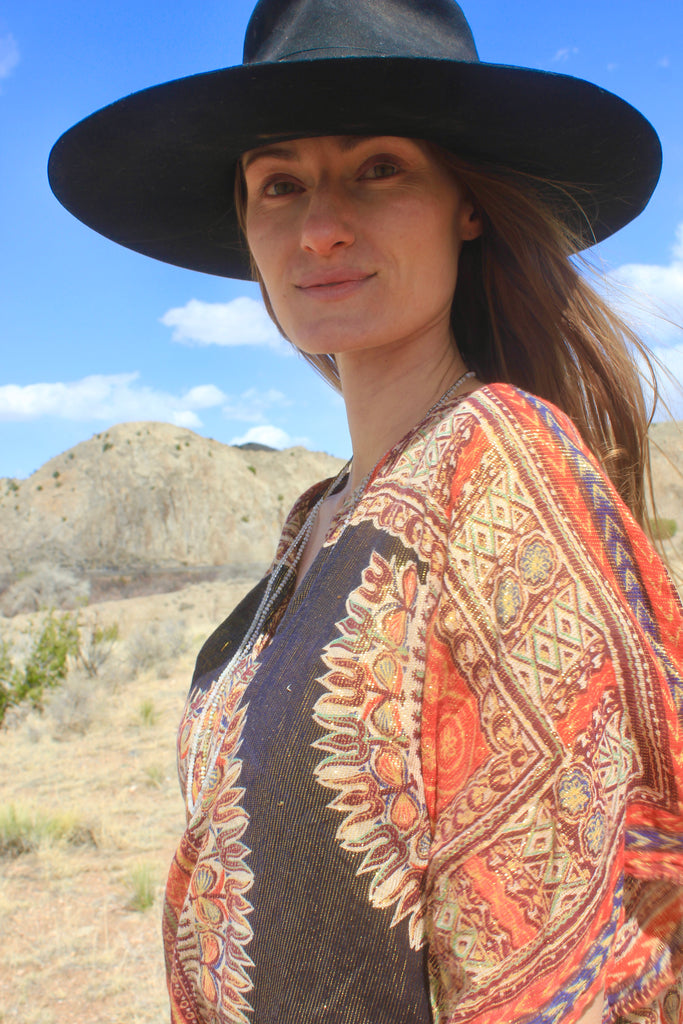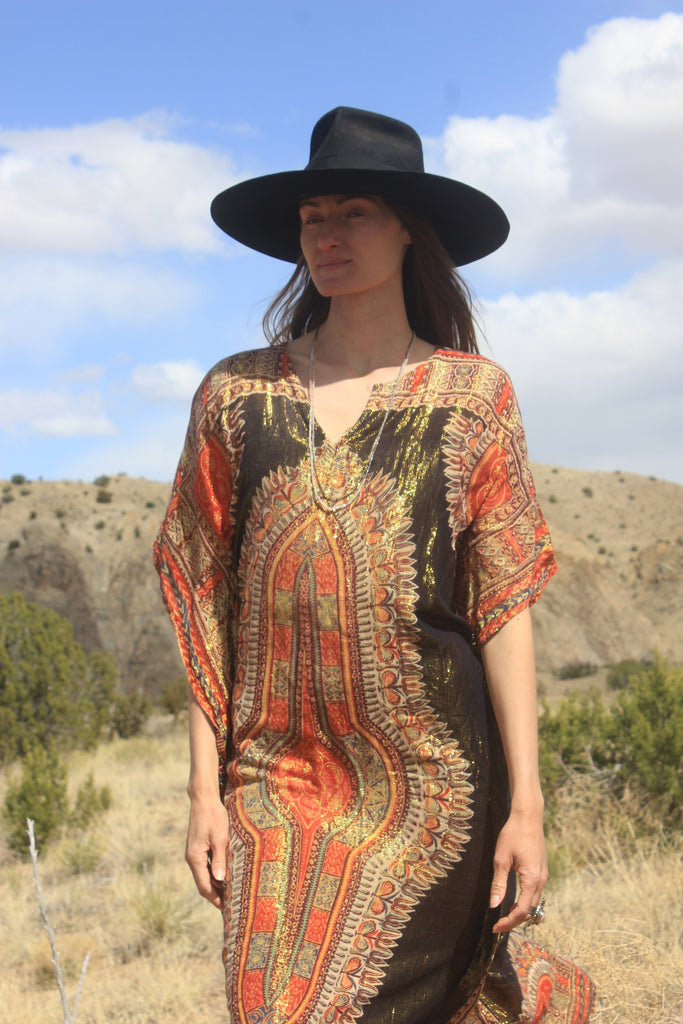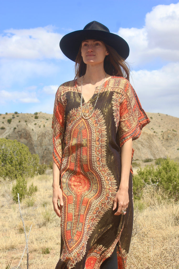 RESERVED “The Luxe Dashiki” RARE 1970s Gauzy Metallic Thread Dashiki Caftan
