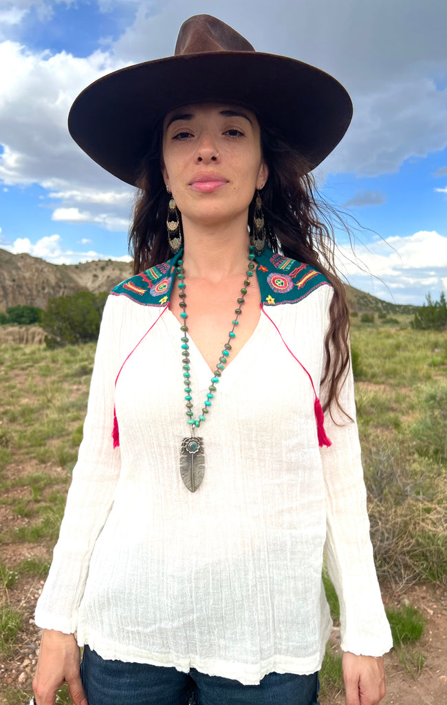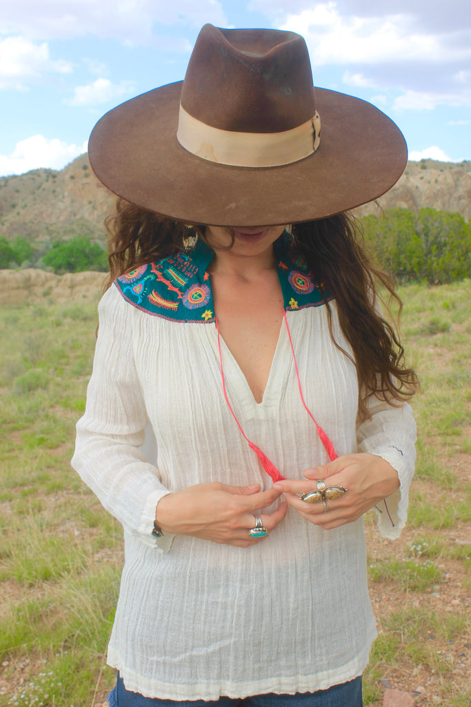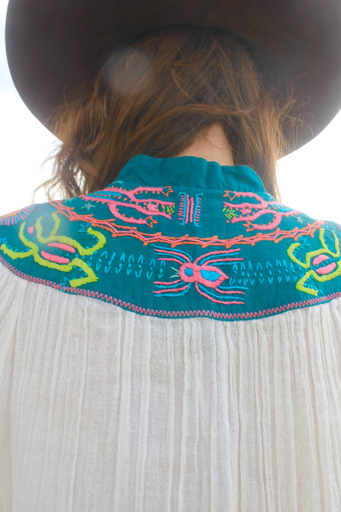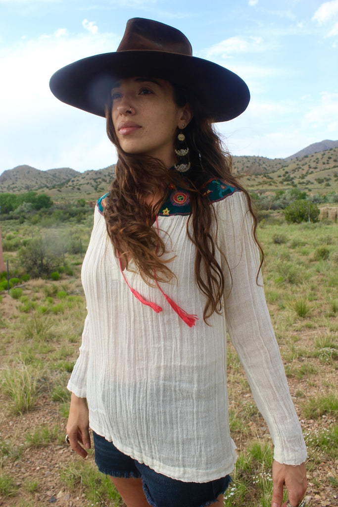 RARE vintage 1960s/1970s Hand Embroidered Gonzalo Bauer Gauzy Cotton Blouse