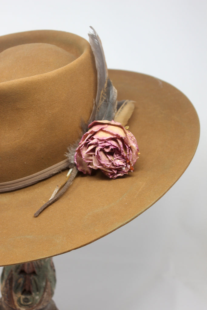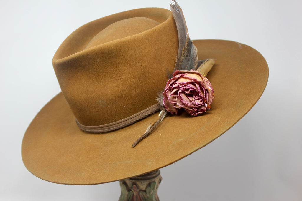 Sustainable fashion and responsible consumerism is a very important topic to us. All Lone Hawk Hats are reshaped and restyled top quality vintage hats generally between the 1930's to the 1970's. All are created strictly and 100% by hand in California.