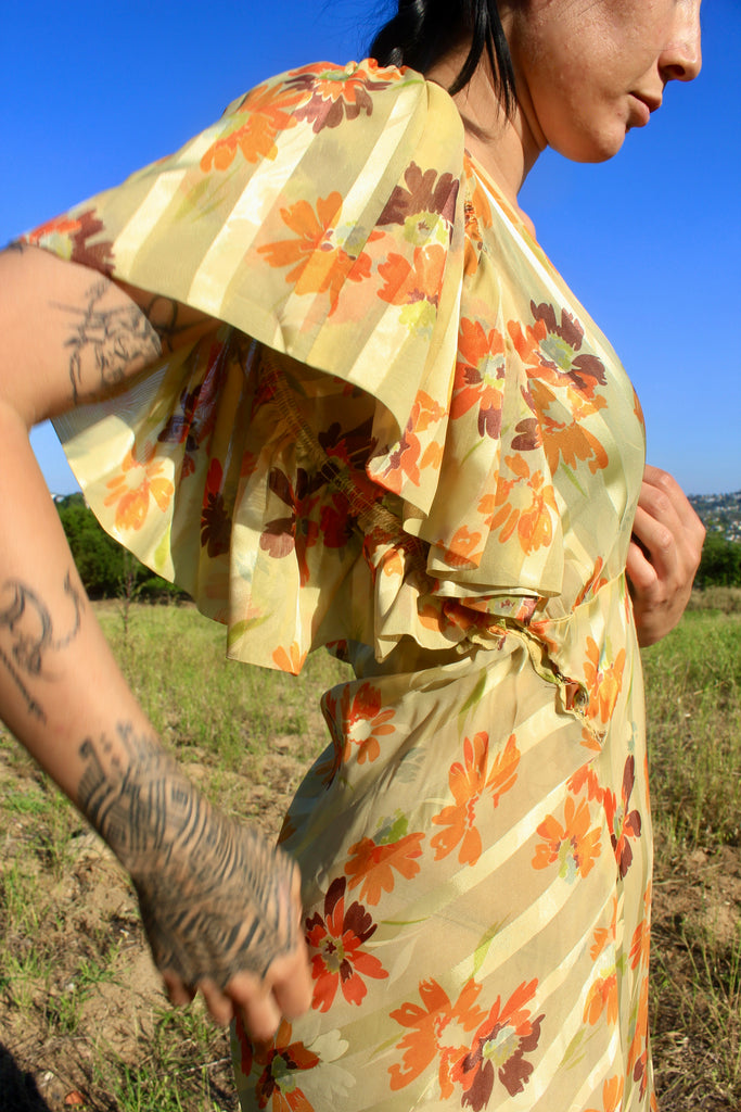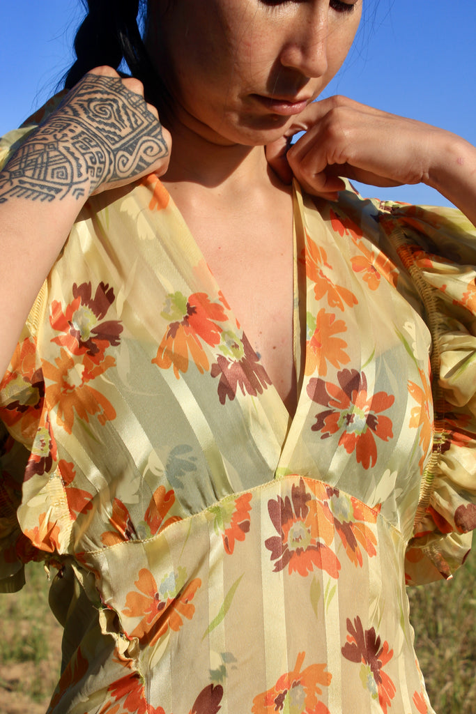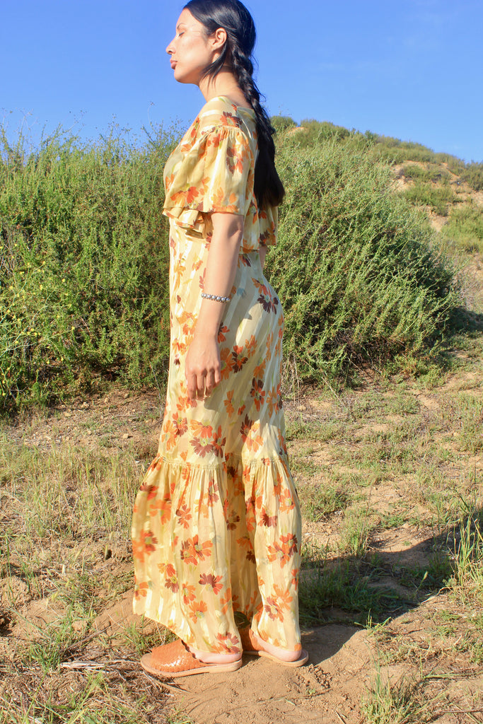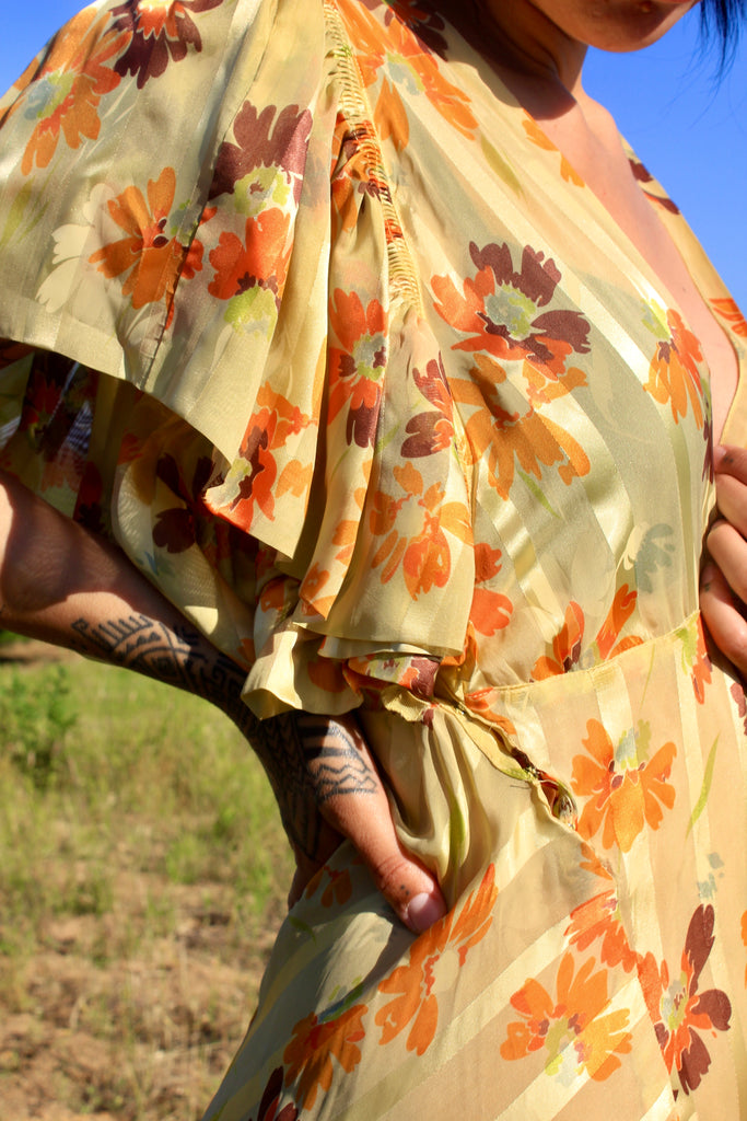Slightly Sheer Delightful Golden Floral (feels like a rayon Chiffon?)