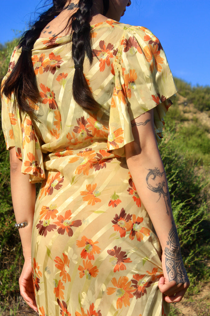 EXQUISITE 1930s Floral Chiffon BIAS CUT Maxi Dress