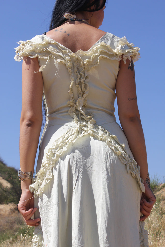 "Tattered Elegance" 1940s Celadon Rayon Evening Dress