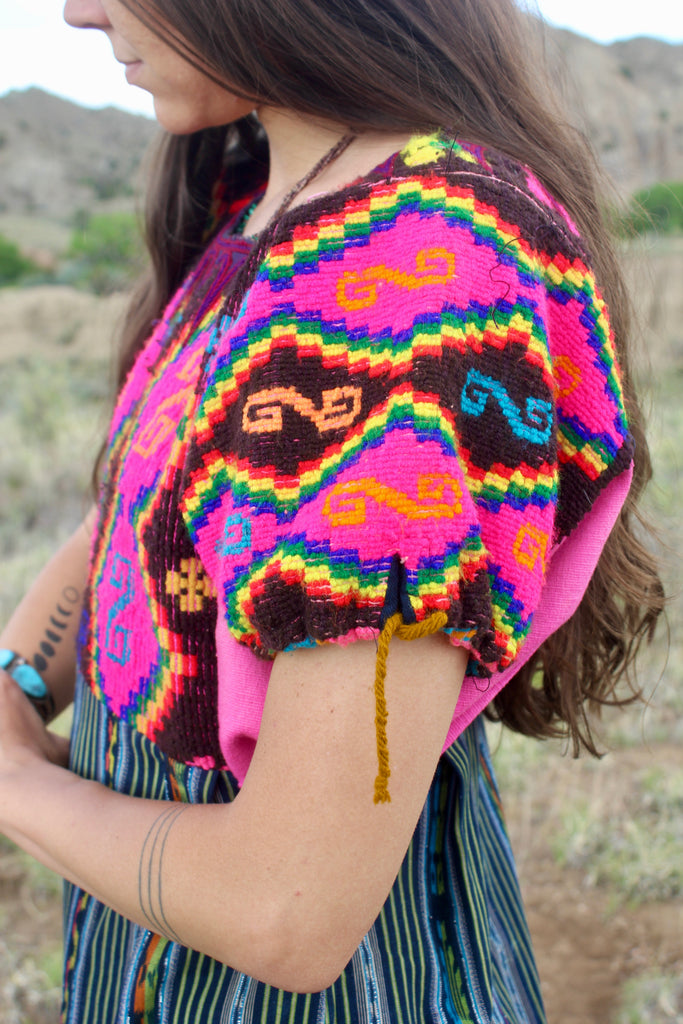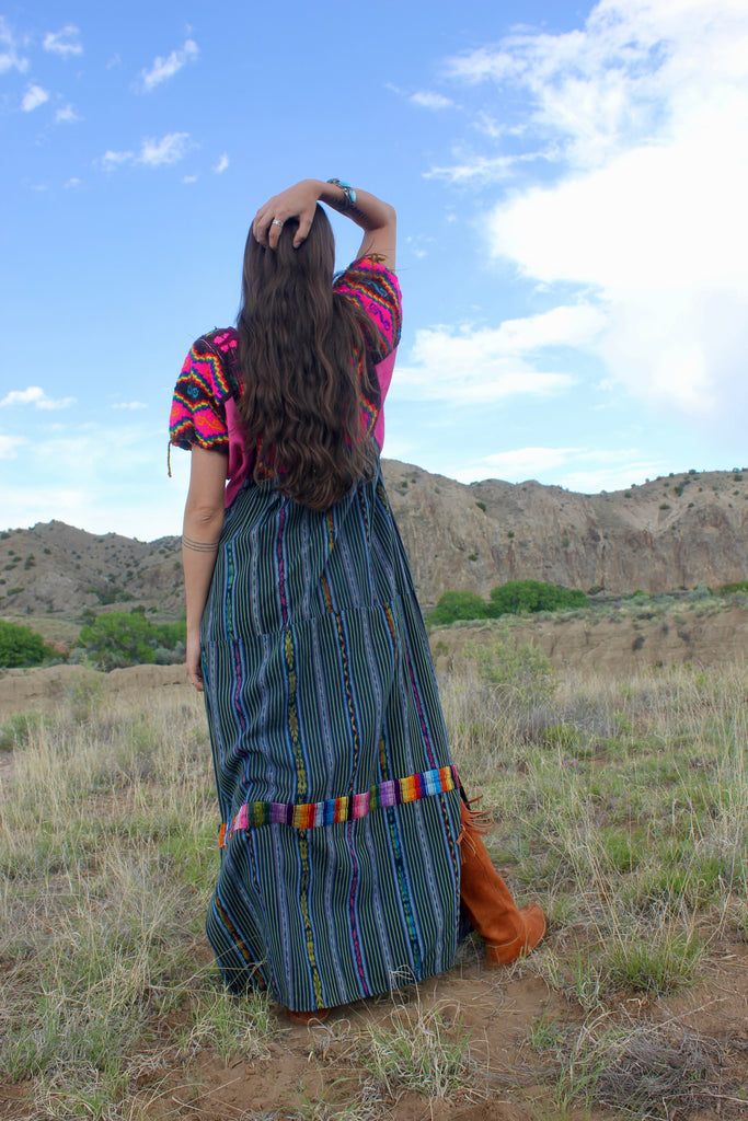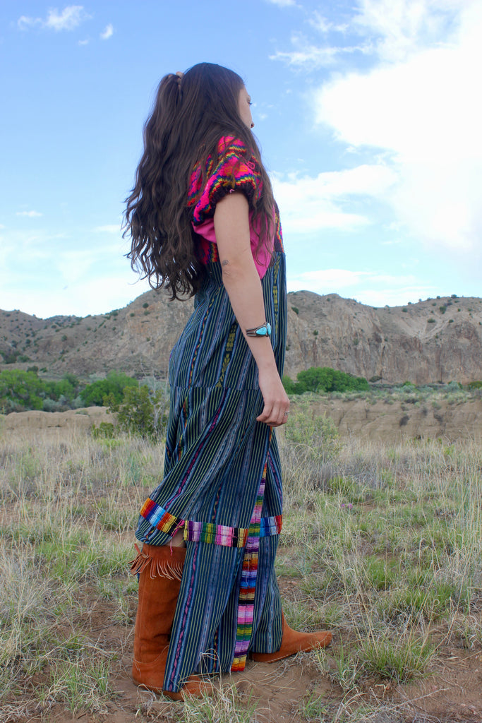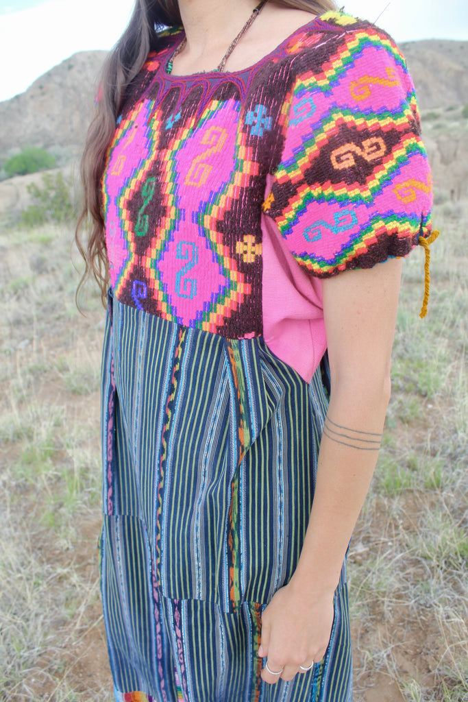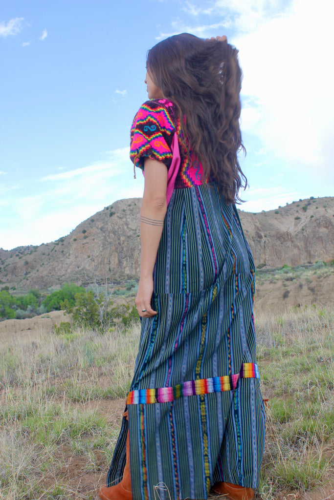 1970s Technicolor Guatemalan Huipil Maxi Dress