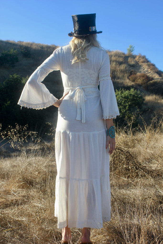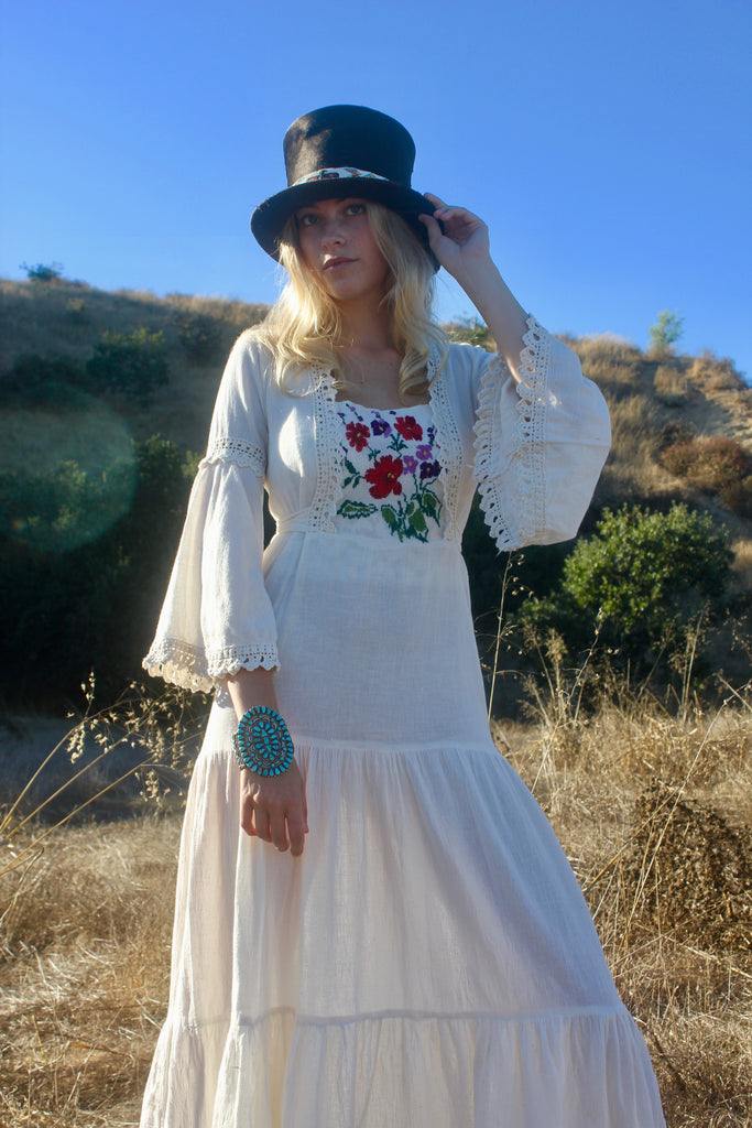 "The Rhiannon" 1970s Hand Embrodiered Cheese Cloth Goddess Maxi Dress