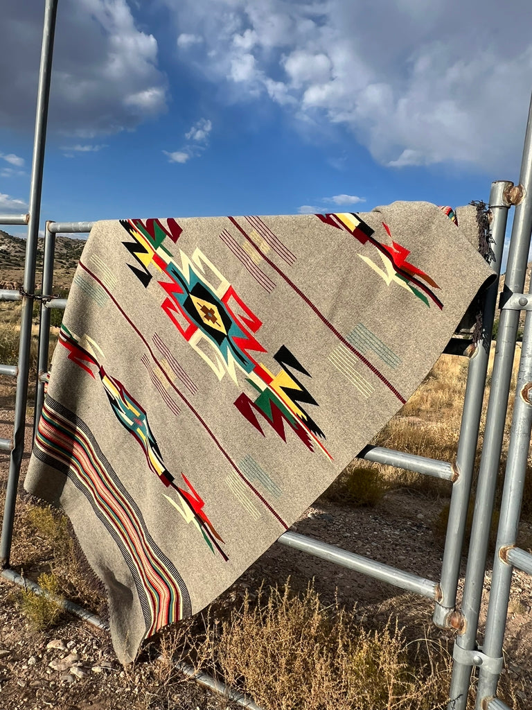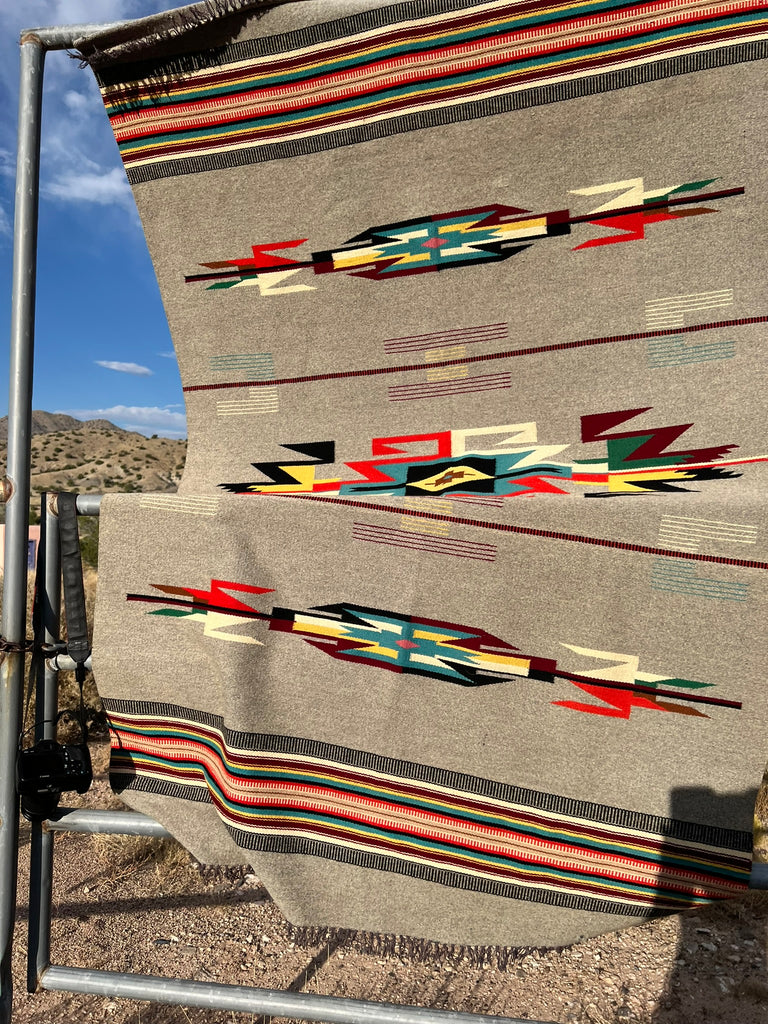 Rare Mid-Century Handwoven Wool Chimayo Blanket