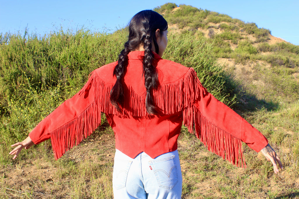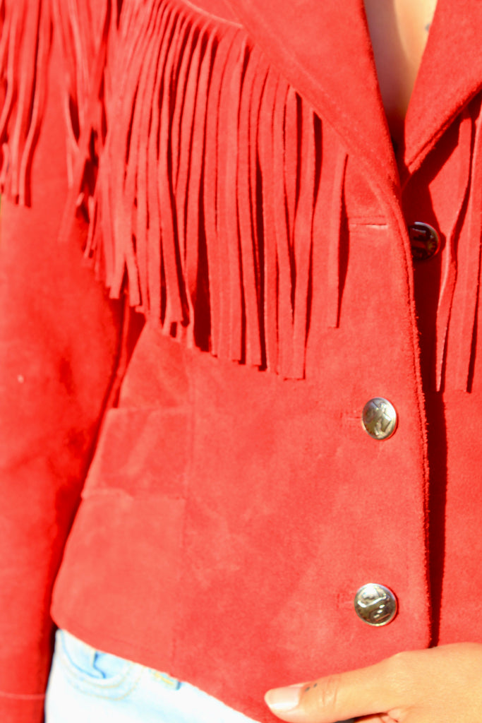 Classic Western Wear Vintage Pioneer Wear Fringe Red Suede Jacket