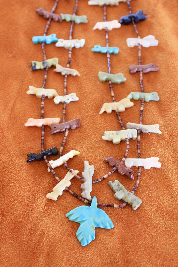 Hand carved Fetish Animals in various stones such as Turquoise, Pipestone and Jet