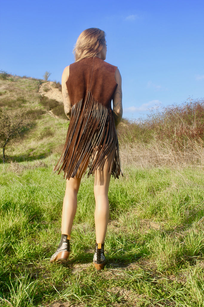 "Woodstock Fringe" RARE 1960s Chocolate Suede Extra Long Fringe Vest