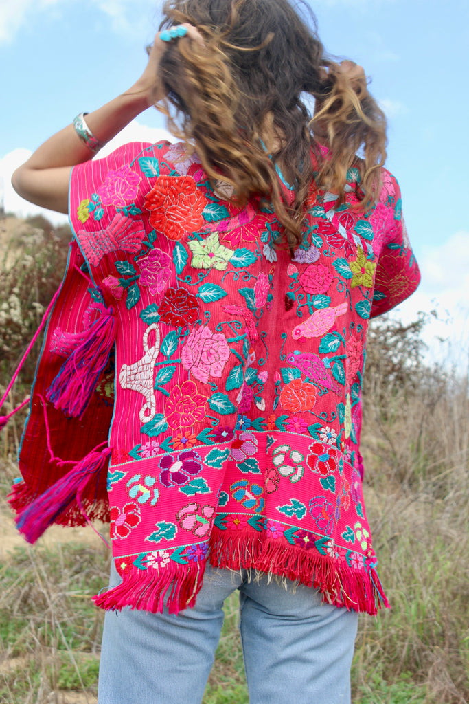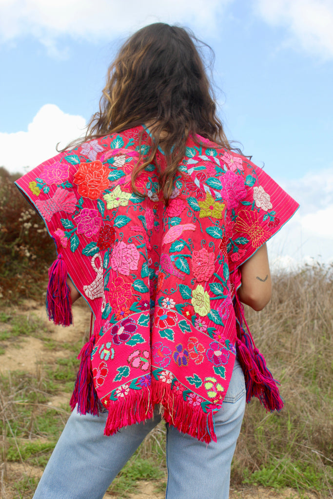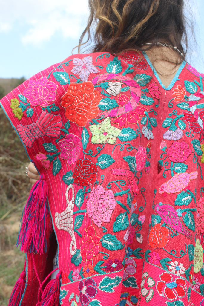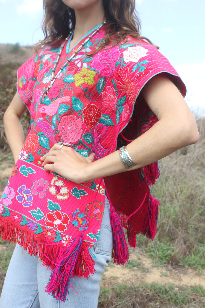 RARE Collectors Piece from Zinacantan Exquisite Vintage Zinacantan Poncho Tassels Detailed Hand Embroidery