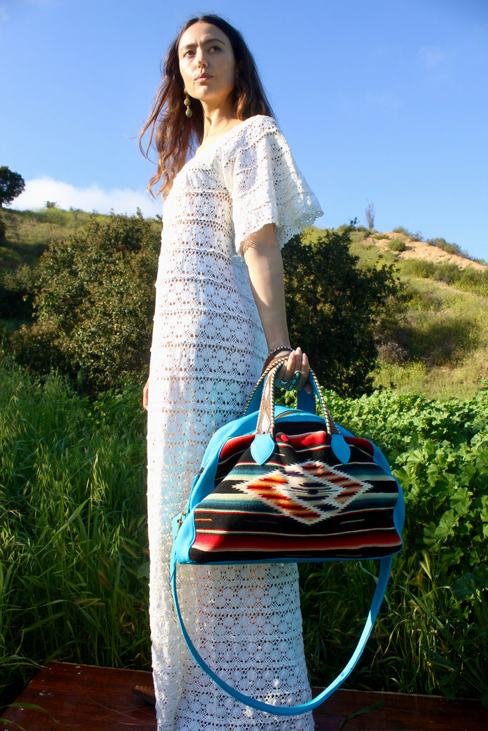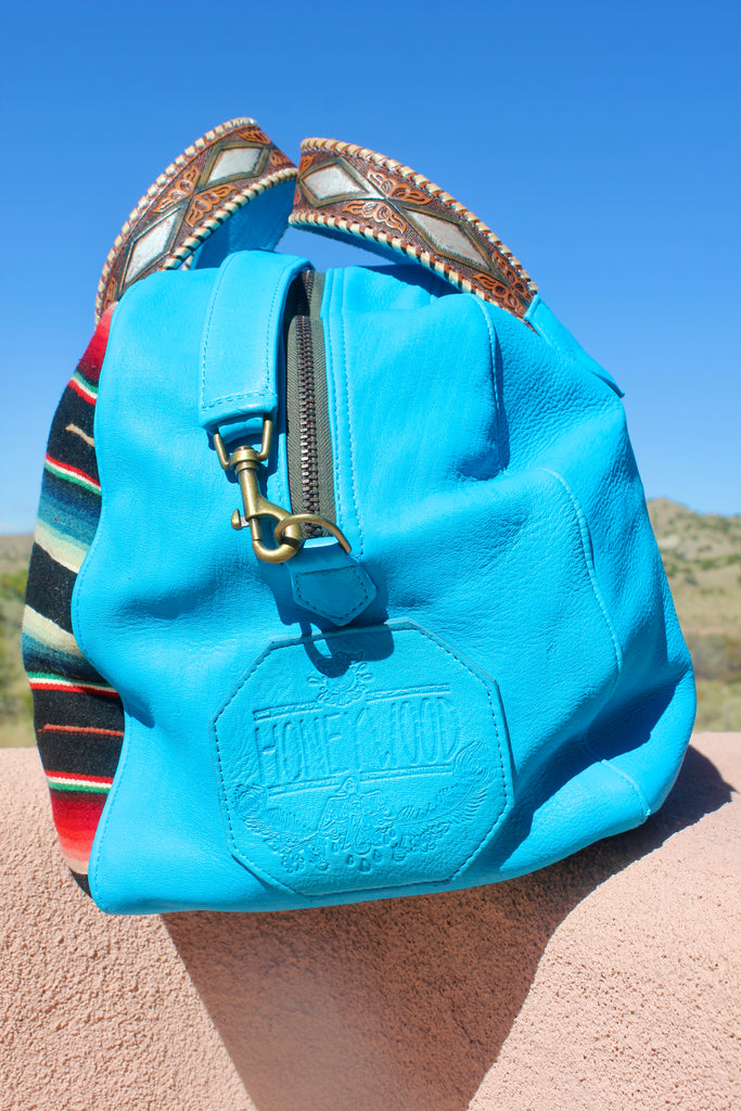 1930s Antique Saltillo Handmade Honeywood Overnighter Bag