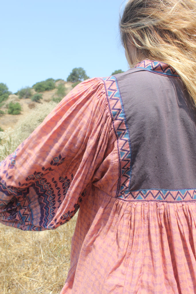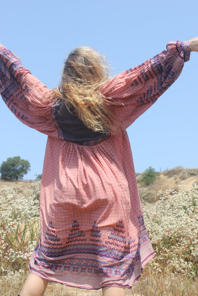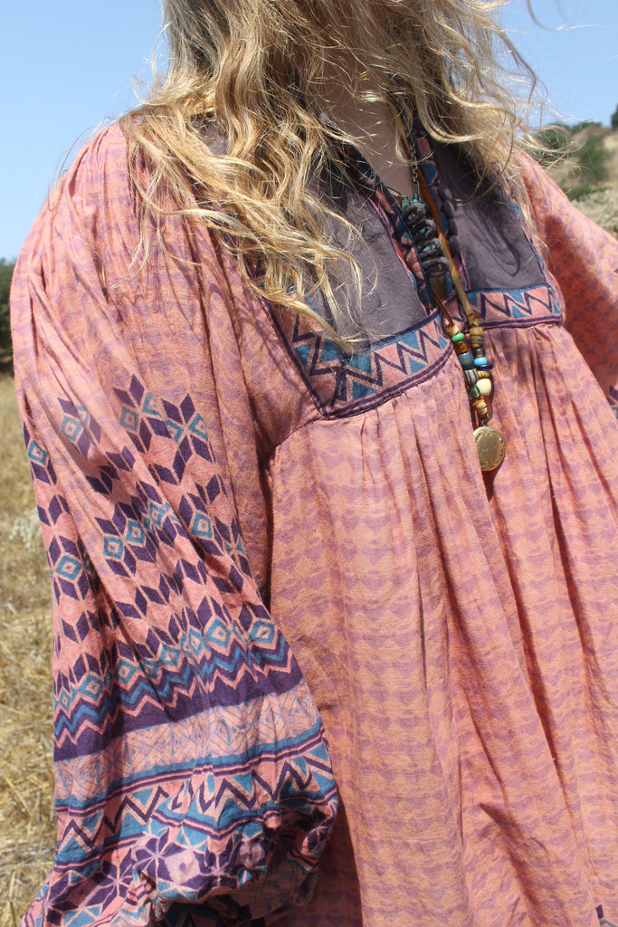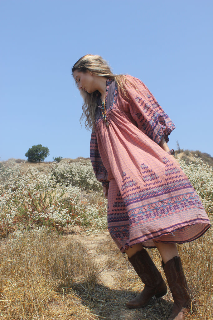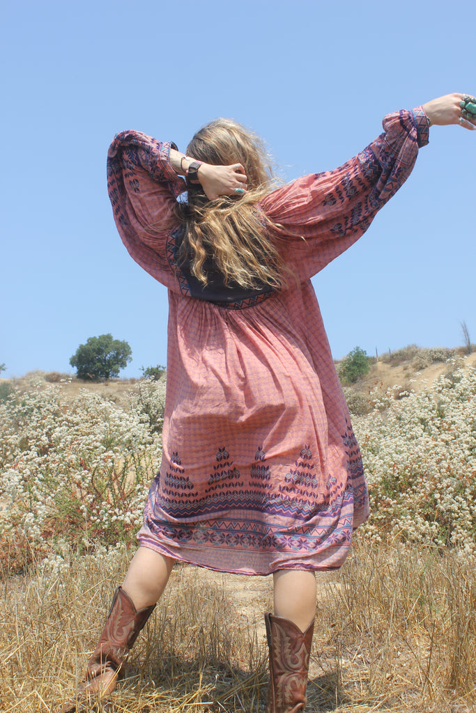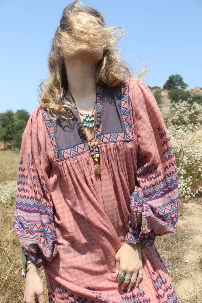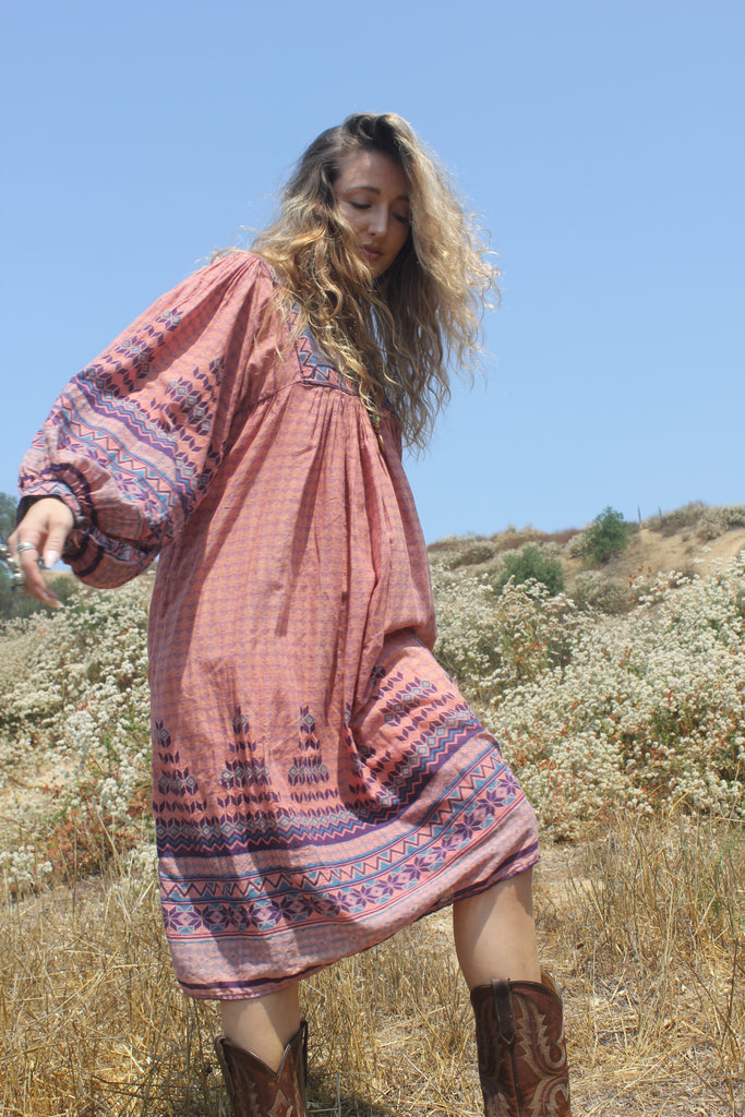 1970s Gauzy Blockprint Kaiser Bohemian Dresss