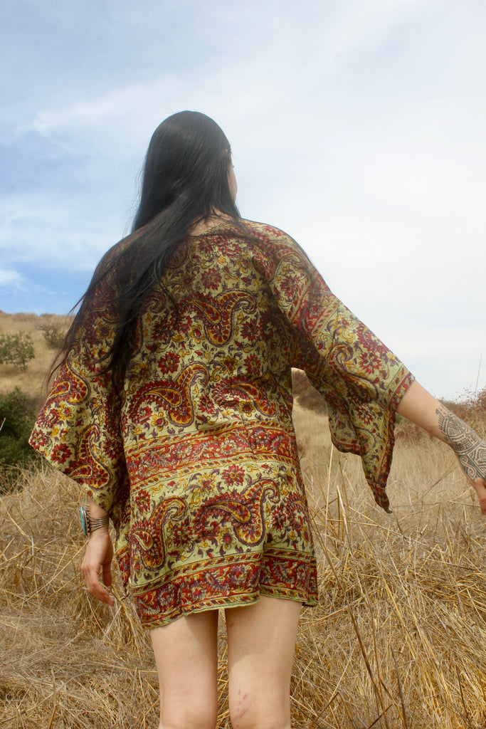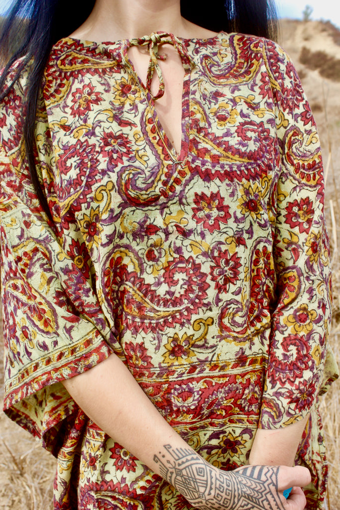 1970s Handwoven Indian Block Print Tunic Size Medium