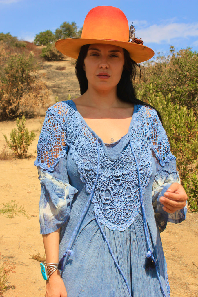 This Dress is slightly sheer wear it on it's own with a vintage slip or lingerie for a Sexy Boudoir Feel or over the handmade cotton slip that comes with it to a Wedding or Dinner. Throw it on over your bikini for beach cocktails.