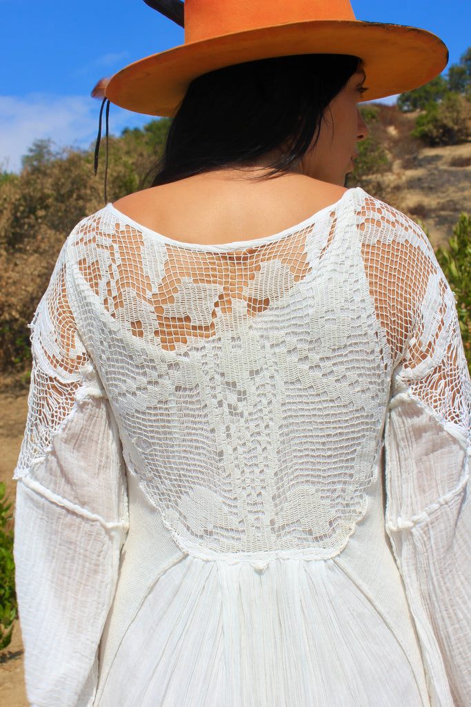 SALE A Honeywood Exclusive Handmade Antique Crochet and Cotton Gauze Maxi Dress S/M