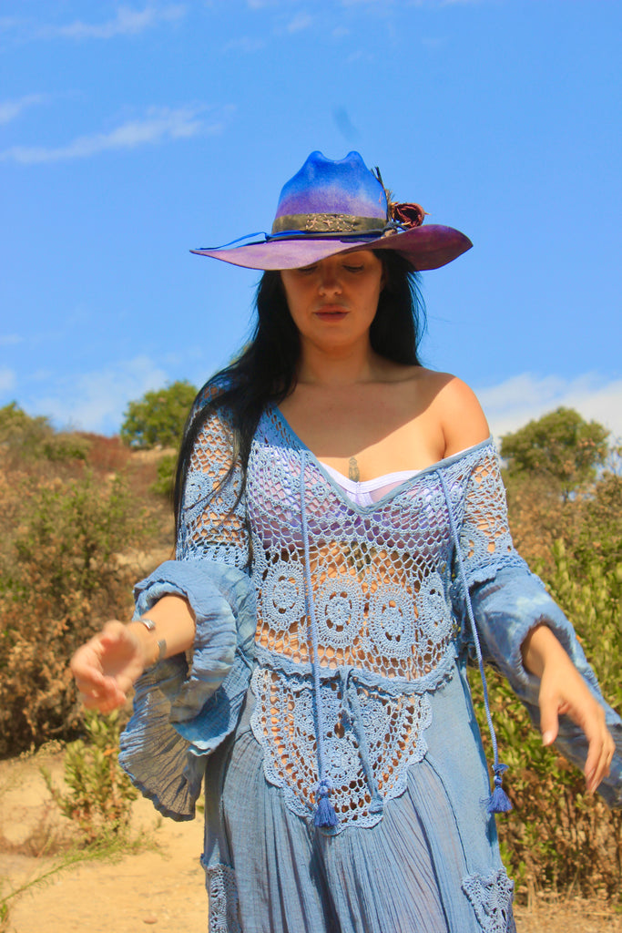 A Honeywood Exclusive Handmade Indigo Antique Crochet and Gauze XL Maxi Dress XL