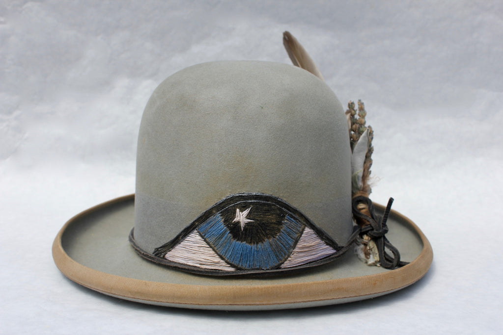 Original Custom Order "Eye-Conic" Hand Embroidered Lone Hawk Hat