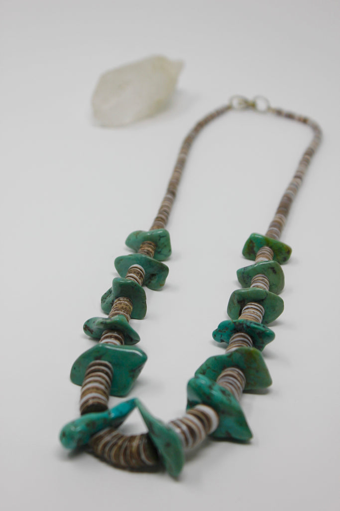 Antique Native American Turquoise Tab and Heishi Bead Necklace