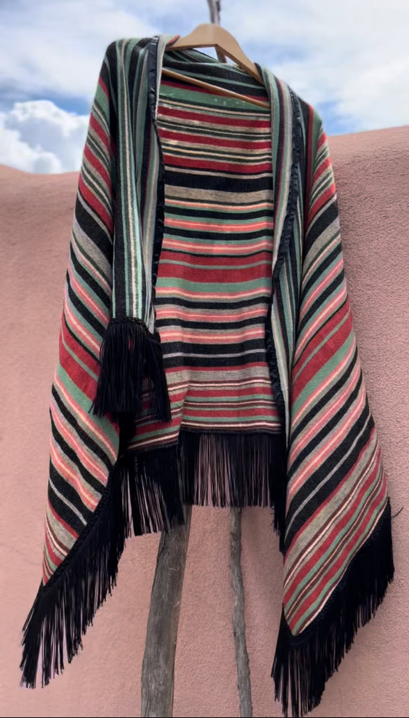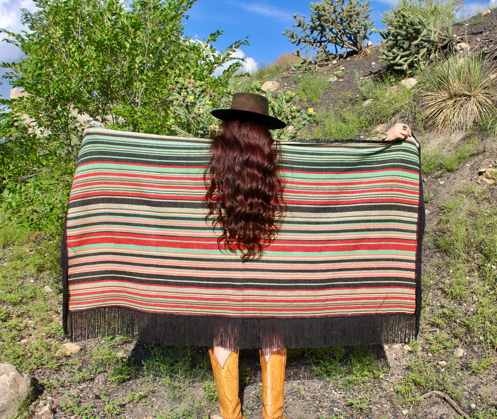 Early Century Hand Woven Wool Southwestern Shawl with Silk Fringe