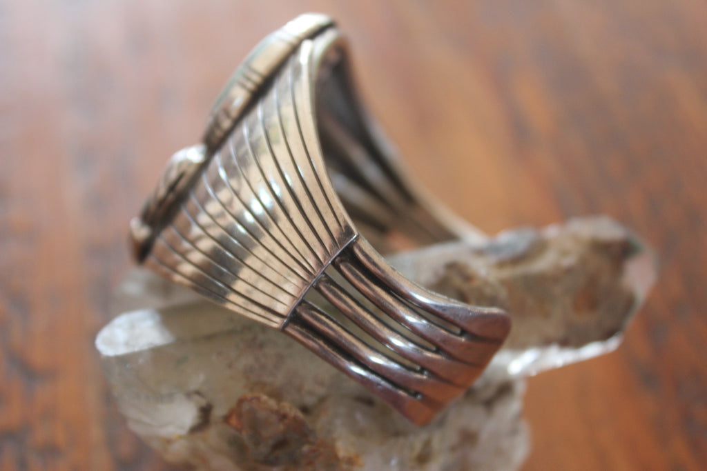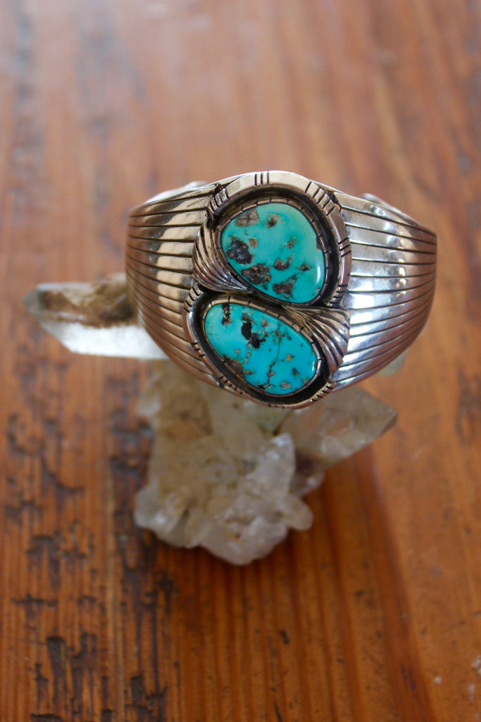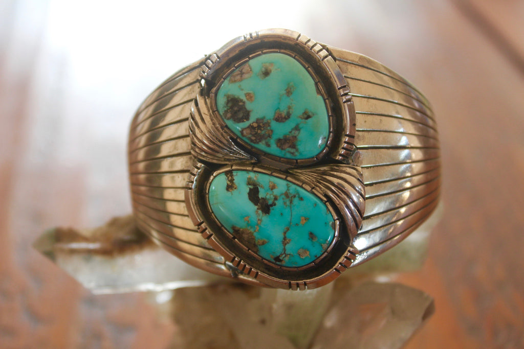 Signed Navajo Elegant Handmade Sterling Turquoise Cuff